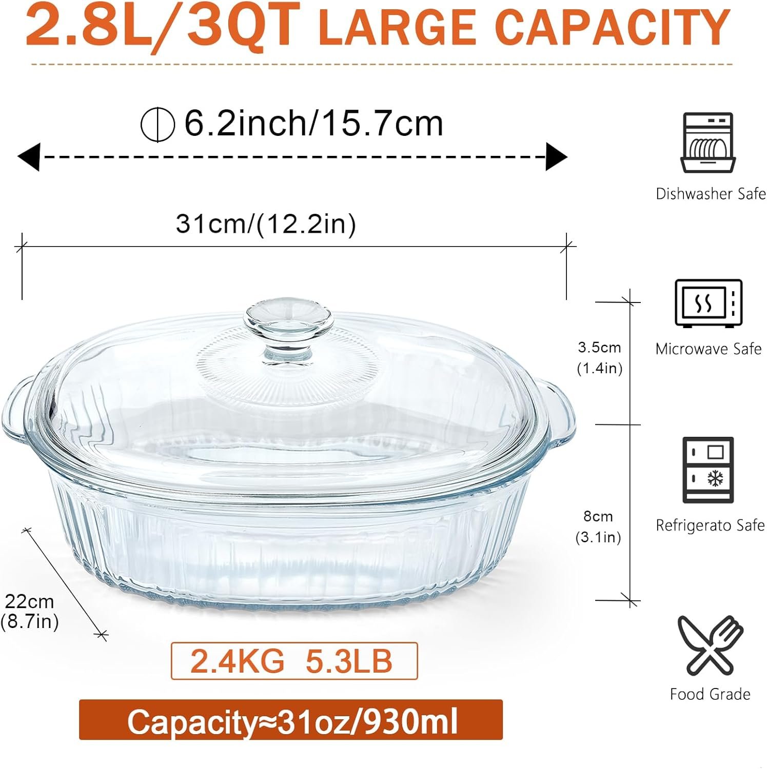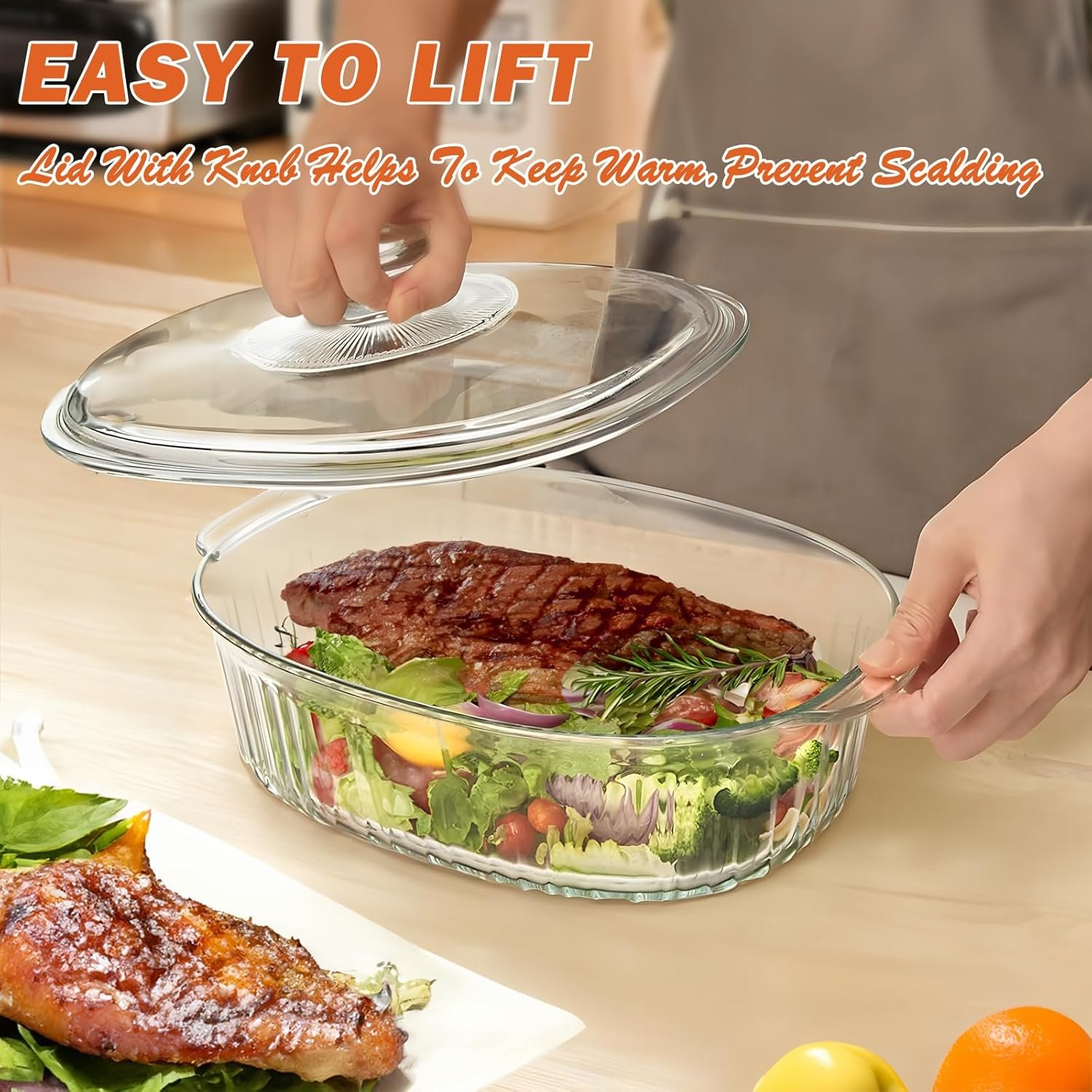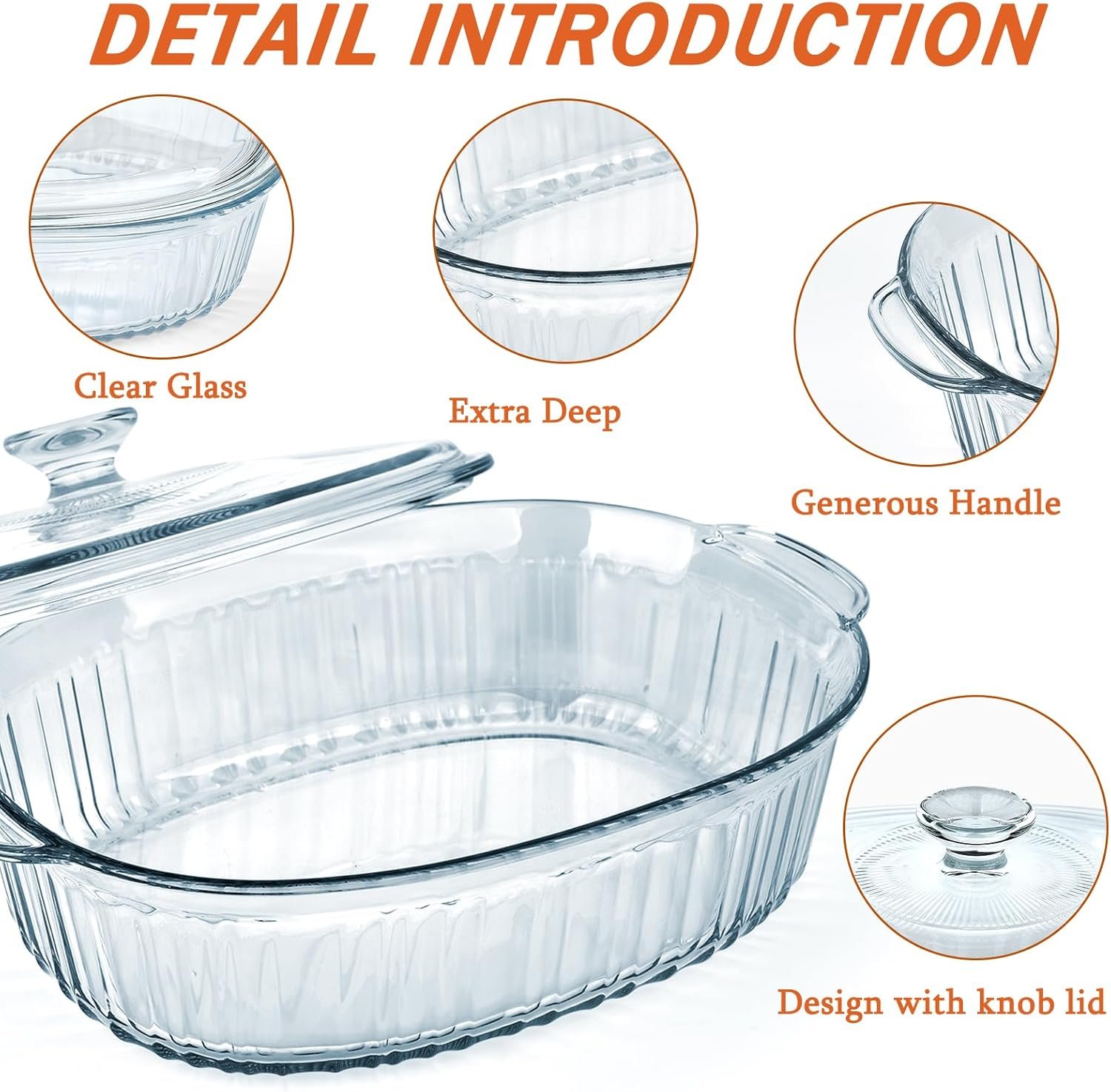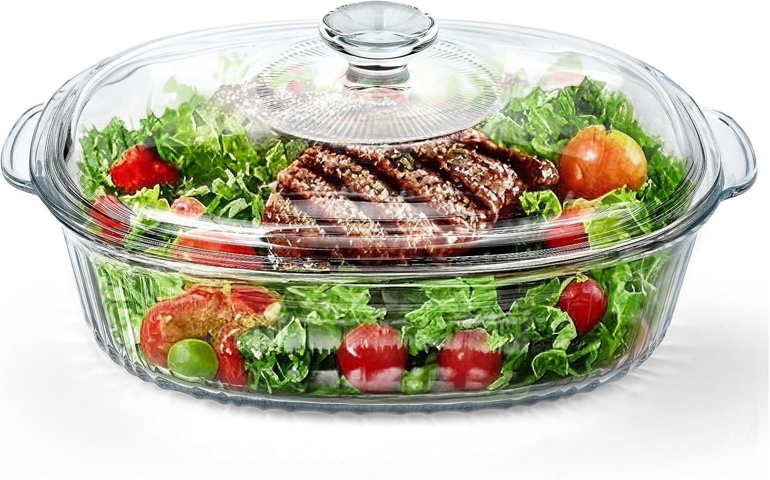 The Glass Casserole Dish with Lid is perfect for baking casseroles, cooking and serving lasagna, mac and cheese, desserts, stews, and vegetables. The oval shape of the dish makes it ideal for cooking longer cuts of meat, and it’s a must-have for every kitchen. With its convenient and user-friendly design, you can easily monitor the cooking process without removing the lid, keeping your food moist and delicious. Whether you’re serving a family dinner or hosting a party, this baking dish adds a touch of elegance and style to your kitchen.