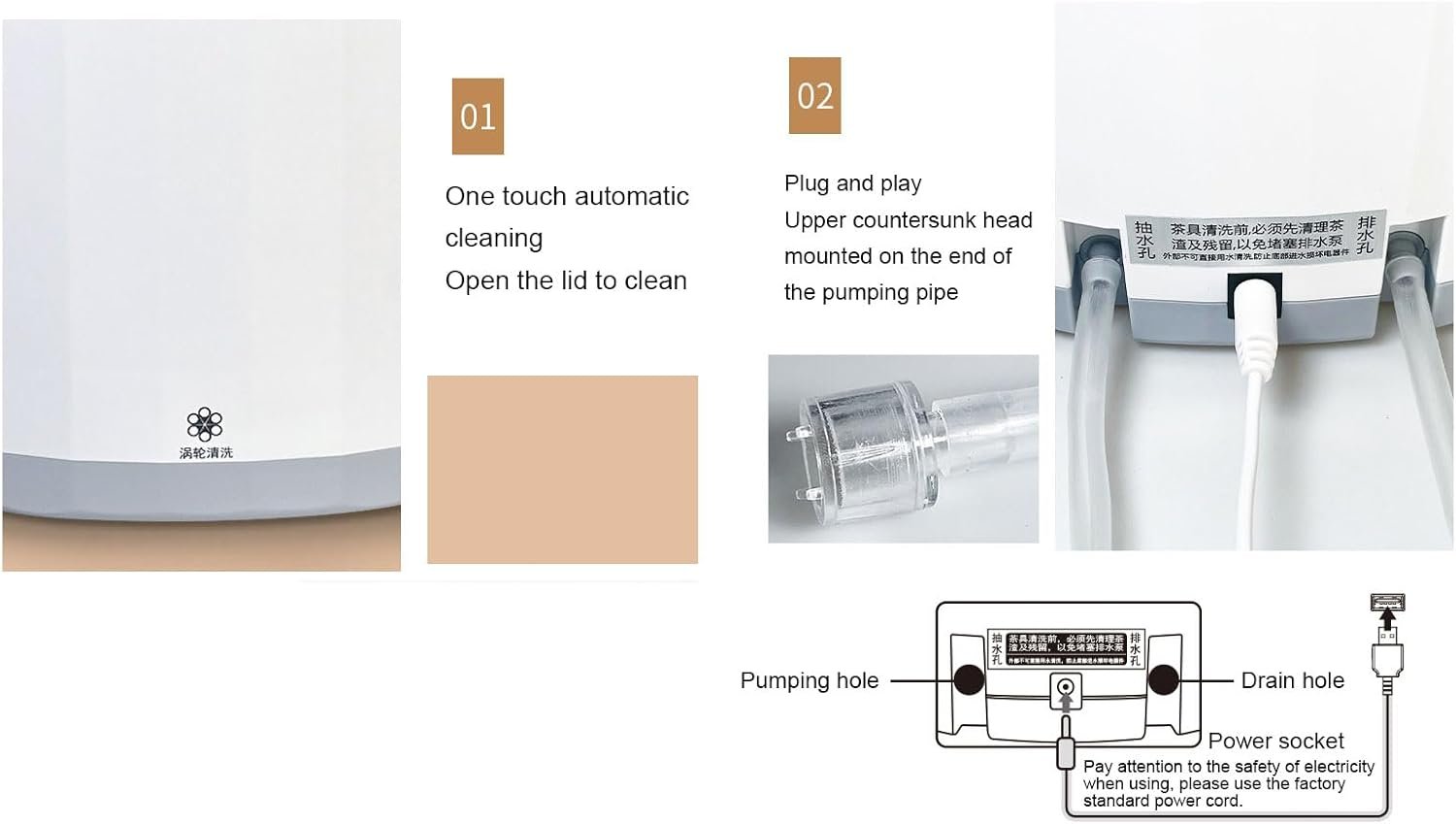 This mini tea cup washer machine provides efficient cleaning with its 15-minute turbo cleaning feature, automatic water change, and 360° flushing, leaving your teacup set glossy and clean.