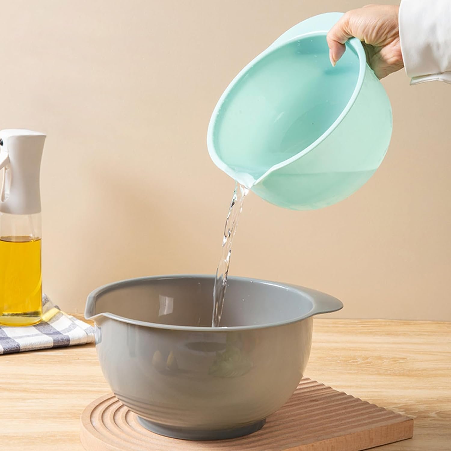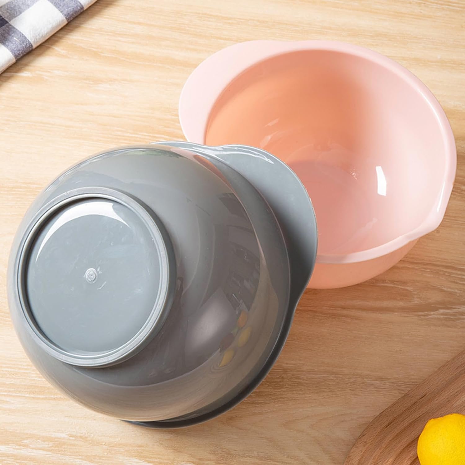 Our mixing bowls are designed with non-slip bottoms and pour spouts, making it easy to mix and pour ingredients. The handles are comfortable to hold, and the bowls are easy to clean.