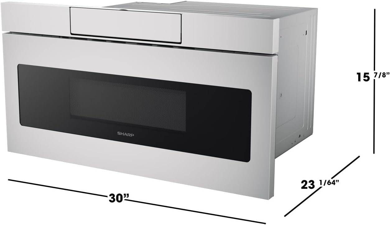 Home Microwave Oven SHARP SMD3070ASY Microwave Drawer Oven, 30-inch, 1.2 Cubic Feet, 950 Watt, Concealed Angled Touch Control Panel with Digital LCD Display, Stainless Steel