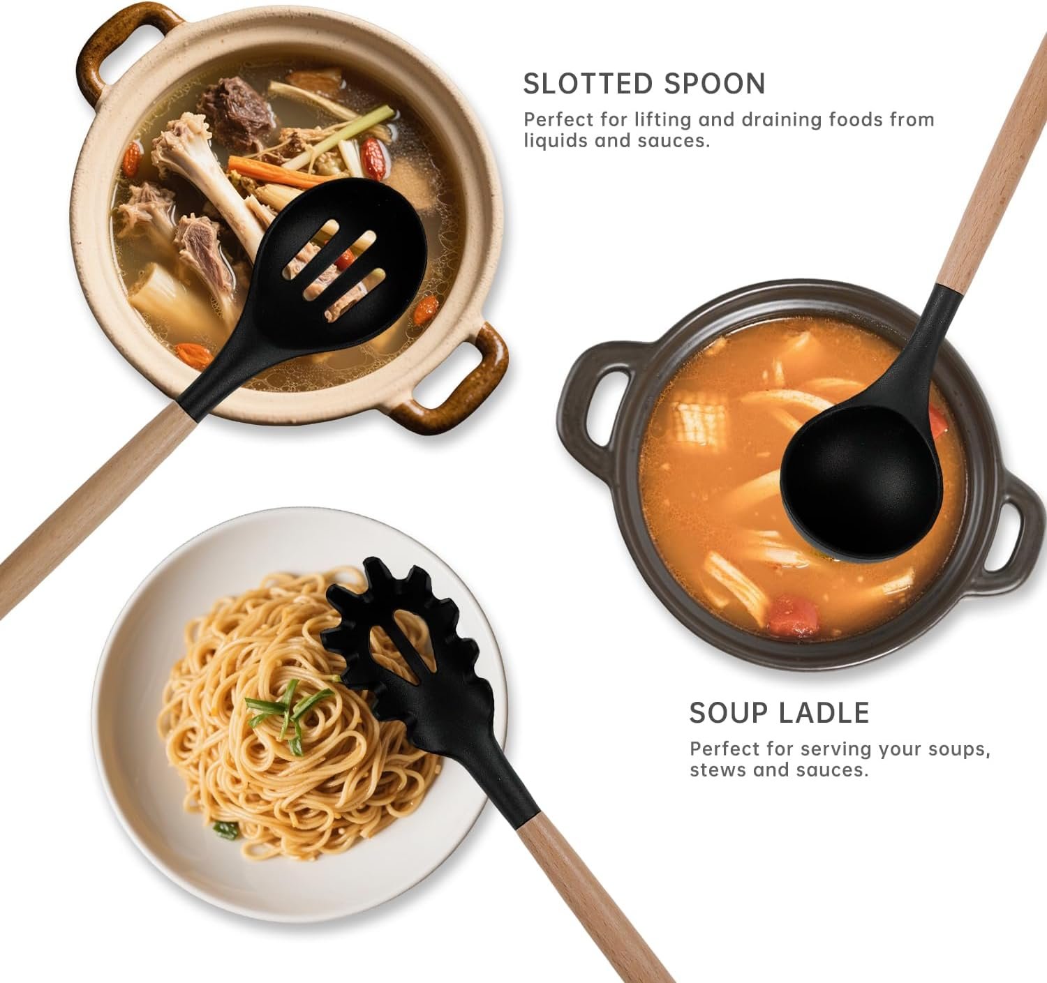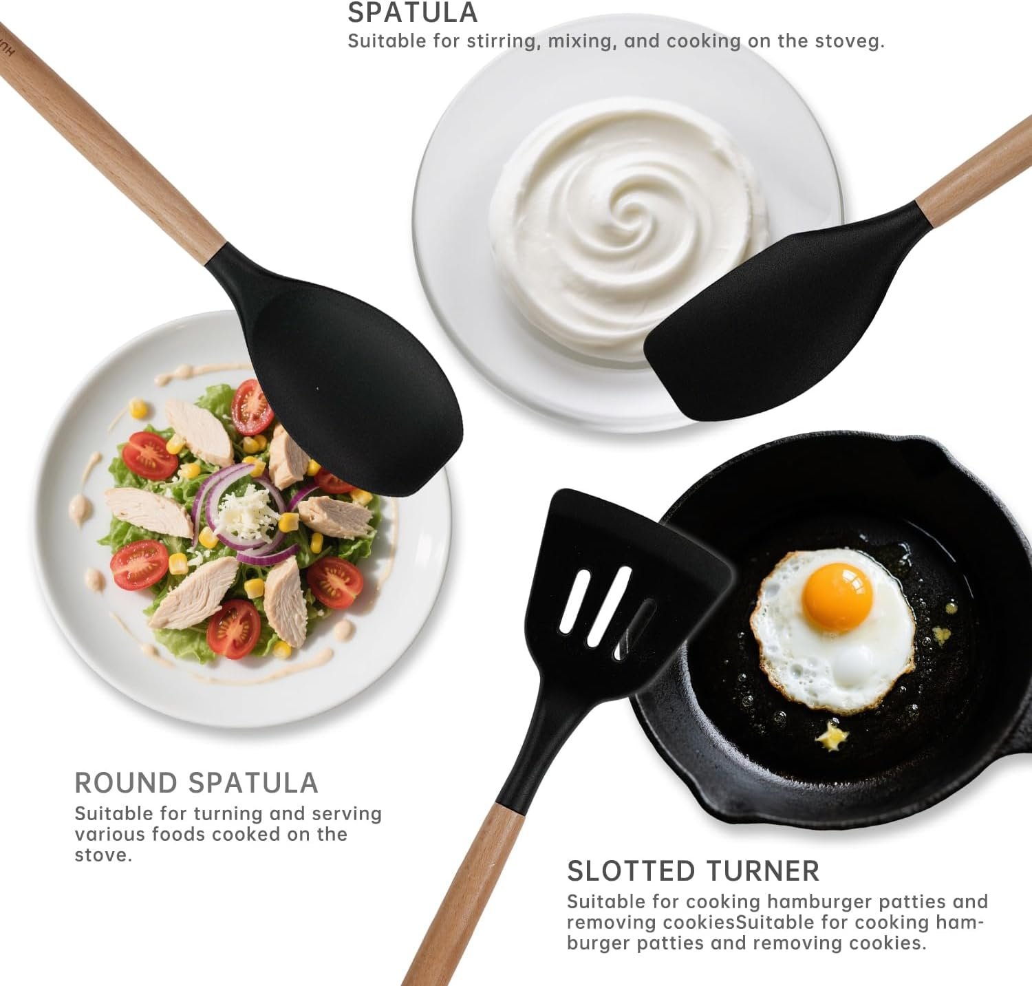 - Durability: The food-grade silicone and solid wood handles ensure the set is long-lasting and resistant to wear.