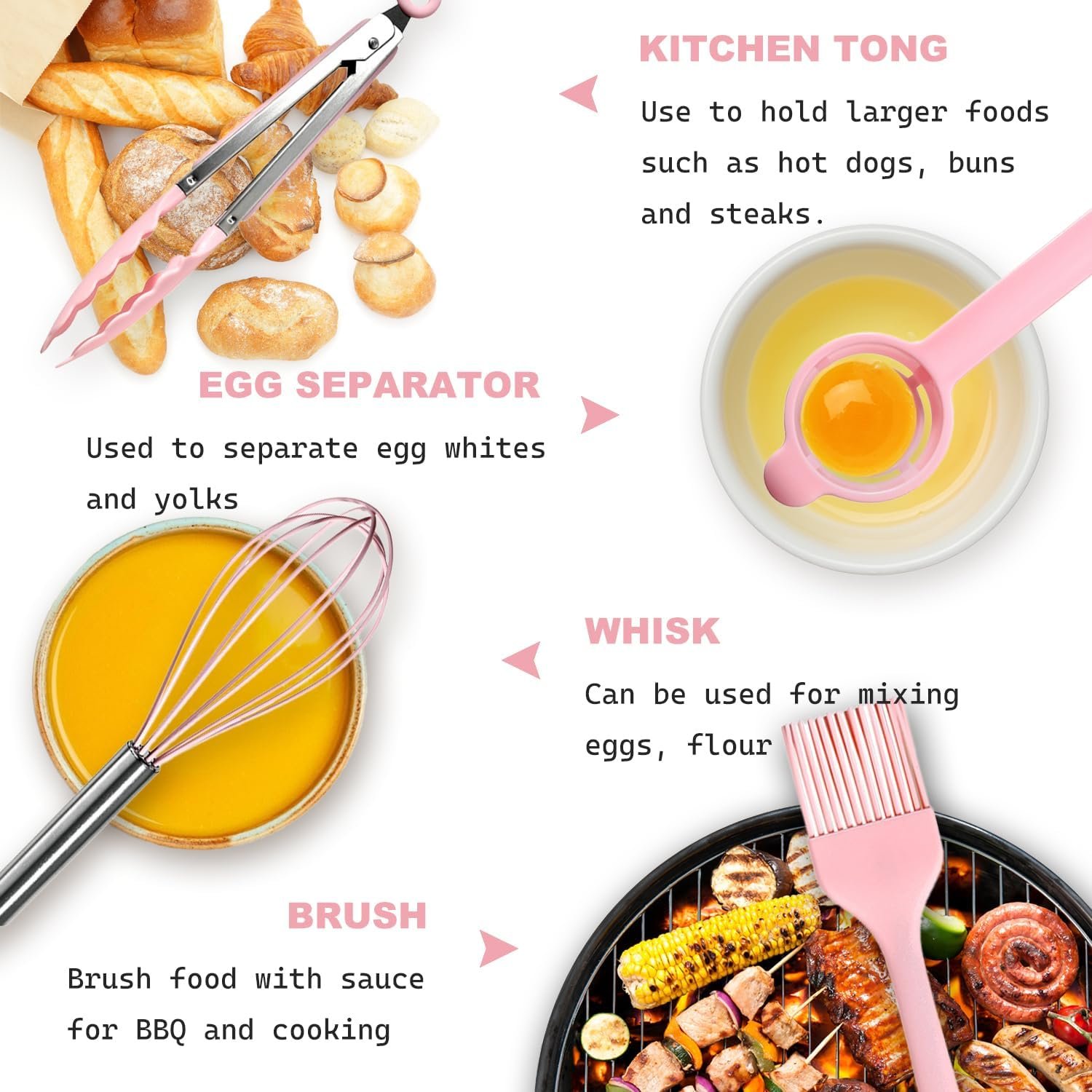 Our kitchen cooking utensils set is made of high-quality, food-grade silicone that is BPA-free and non-toxic. The set includes 15 pieces of multifunctional utensils, such as a deep soup spoon, slotted turner, pasta server, basting brush, whisk, tongs, turner, skimmer, and silicone spatula. These utensils are designed to meet your daily cooking and baking needs, making them a perfect gift for housewarming, wedding, and first apartment essentials.
