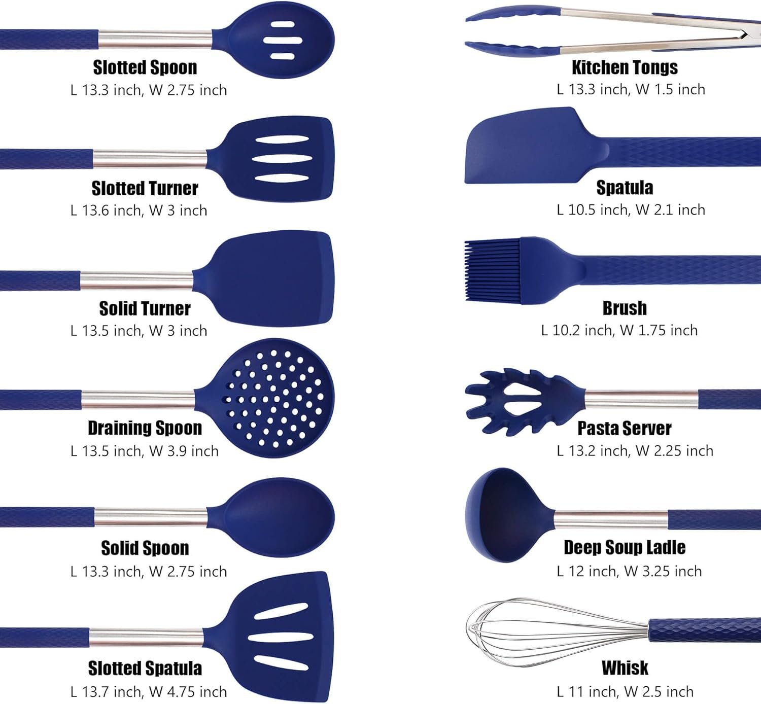 - Ergonomic design with soft silicone heads that won’t damage pans.