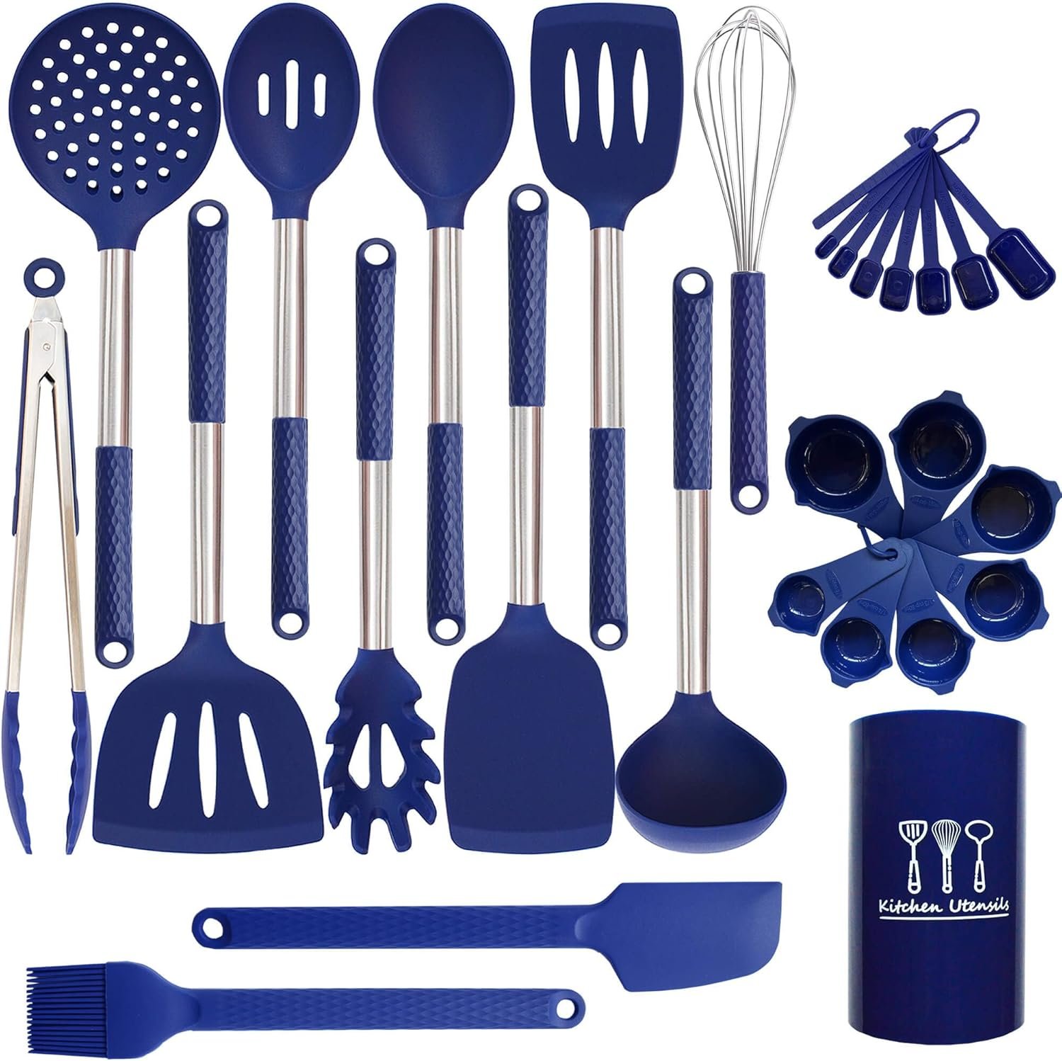 - Set includes a utensil holder for easy storage.
