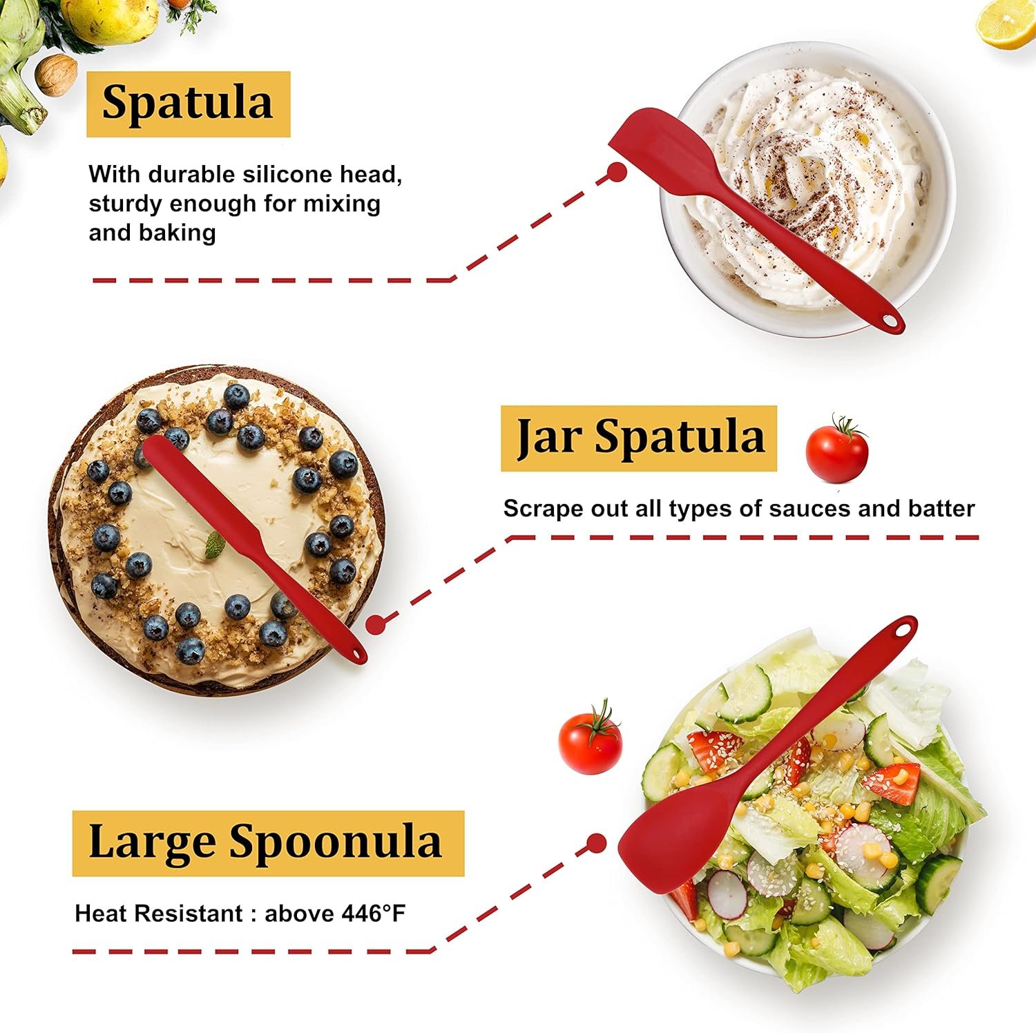 • Heat-resistant up to 446°F, allowing for high-temperature cooking without bending, melting, or shattering.