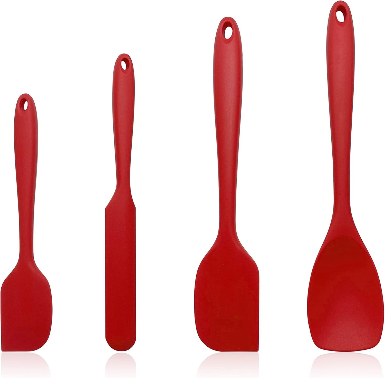 Silicone Spatula Set, Rubber Cooking Utensil Set 4-Piece, Heat Resistant Seamless Turner Spatulas for Nonstick Cookware, Dishwasher Safe, Red