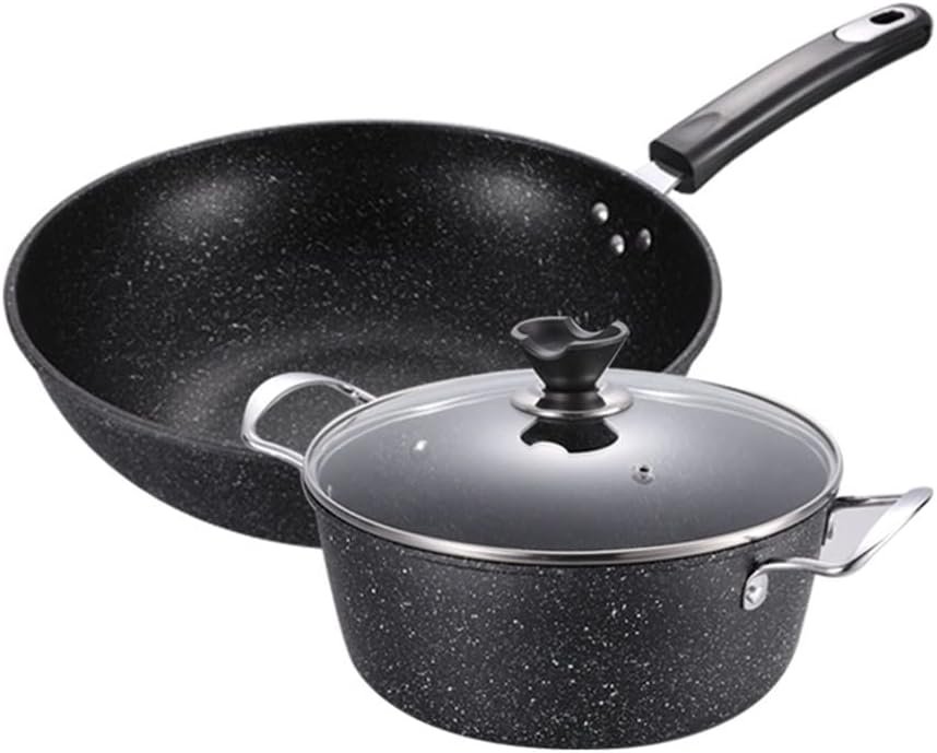 The set includes a wok with a diameter of 32cm and a soup pot with a diameter of 24cm. The material used is refined iron with a tempered glass cover, and the color is as shown.