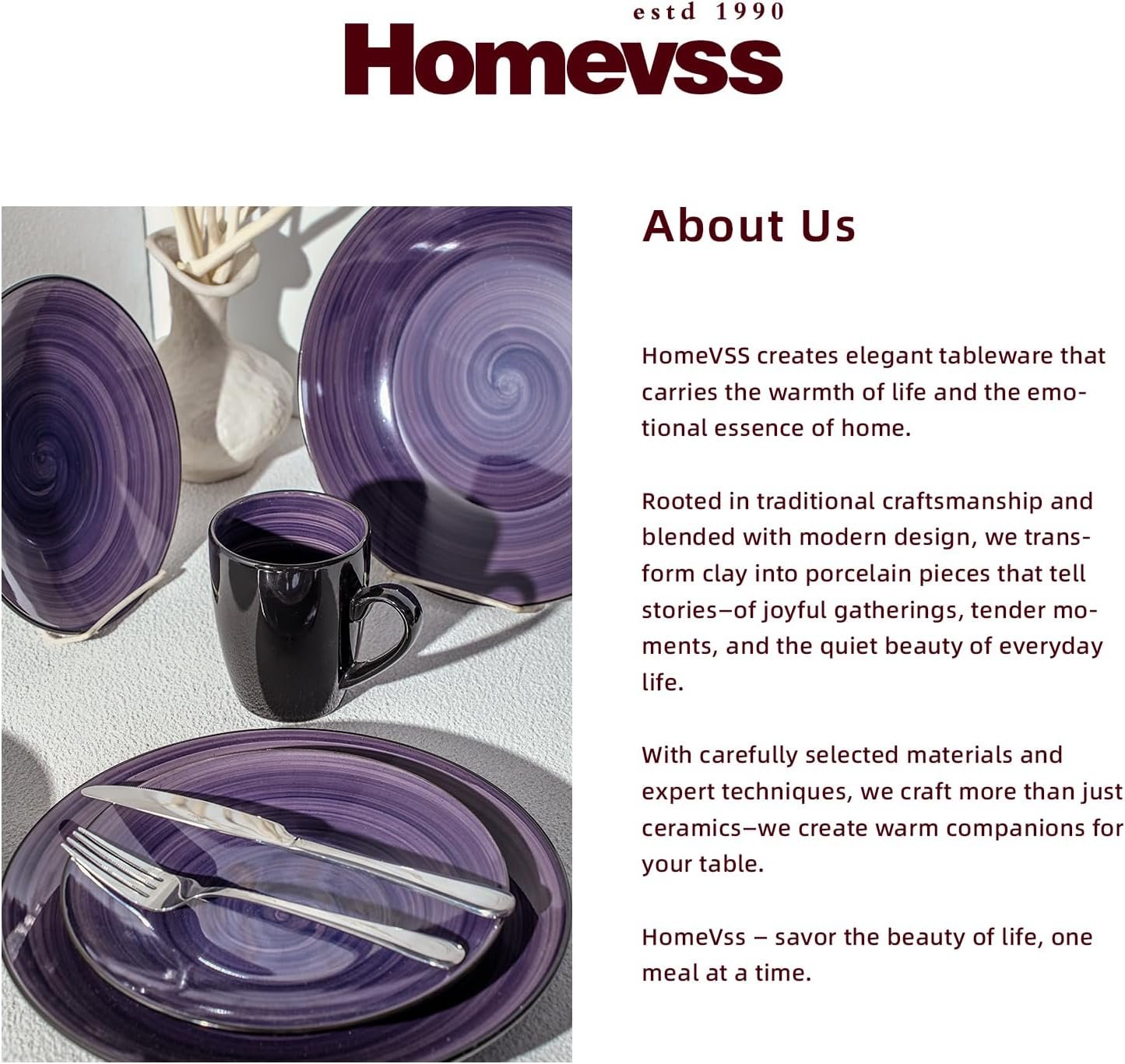 Founded in 1990, Homevss has been creating elegant tableware that embodies the warmth of everyday life and the emotional essence of home. Our journey began at the southern foothills of the Taihang Mountains, a region with a rich ceramic heritage.