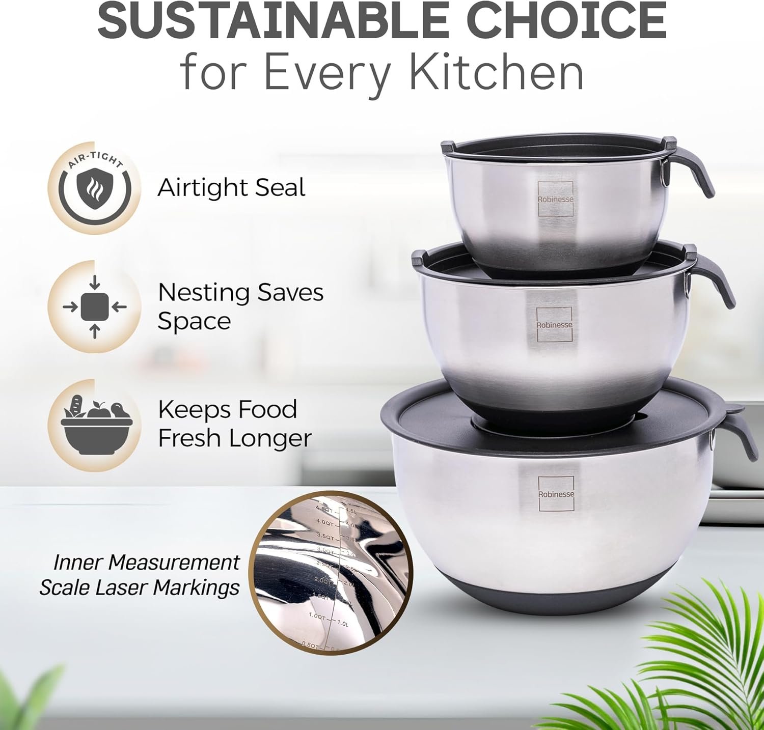 Price: (as of – Details) Product Description This premium stainless steel mixing bowl set is a must-have for every kitchen