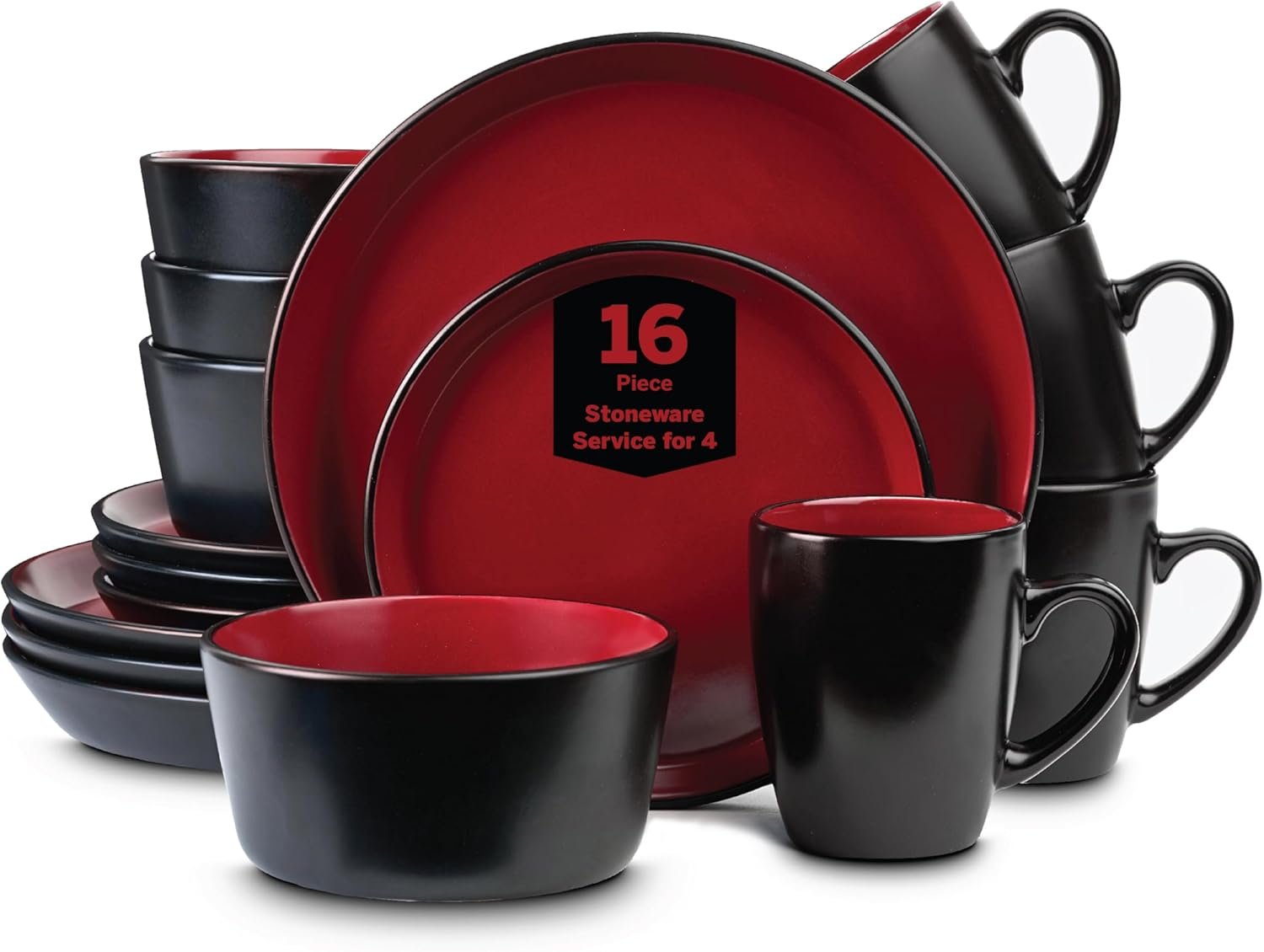 - Modern and Bold Design: The two-tone stoneware in bold red and black with a lipped edge adds contrast and flair, elevating every meal with instant drama.