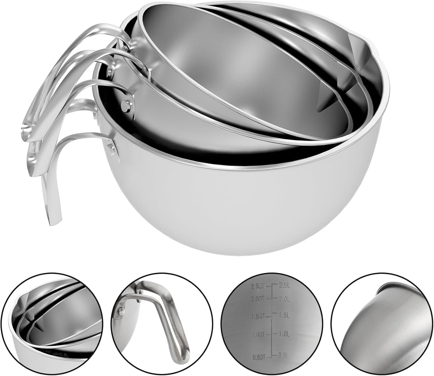 - Sturdy & Durable: Our mixing bowls are made of thick 304 stainless steel material that won’t rust, crack, or chip, and are BPA-free and food-grade safe.