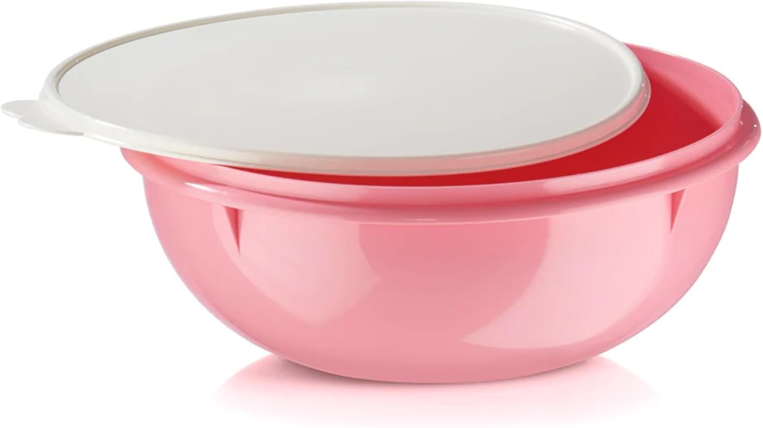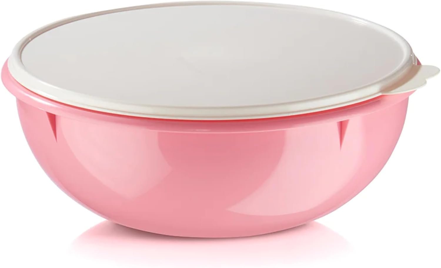 The Tupperware 26 Cup Large Fix N Mix Bowl is a versatile and essential kitchen tool, available in a vibrant pink color with a frosted clear seal/lid or a classic combination of pink with a white seal. This 26-cup (6.2L) everything bowl is perfect for preparing, serving, and storing a wide variety of dishes, from salads and fruit to pasta and leftovers.