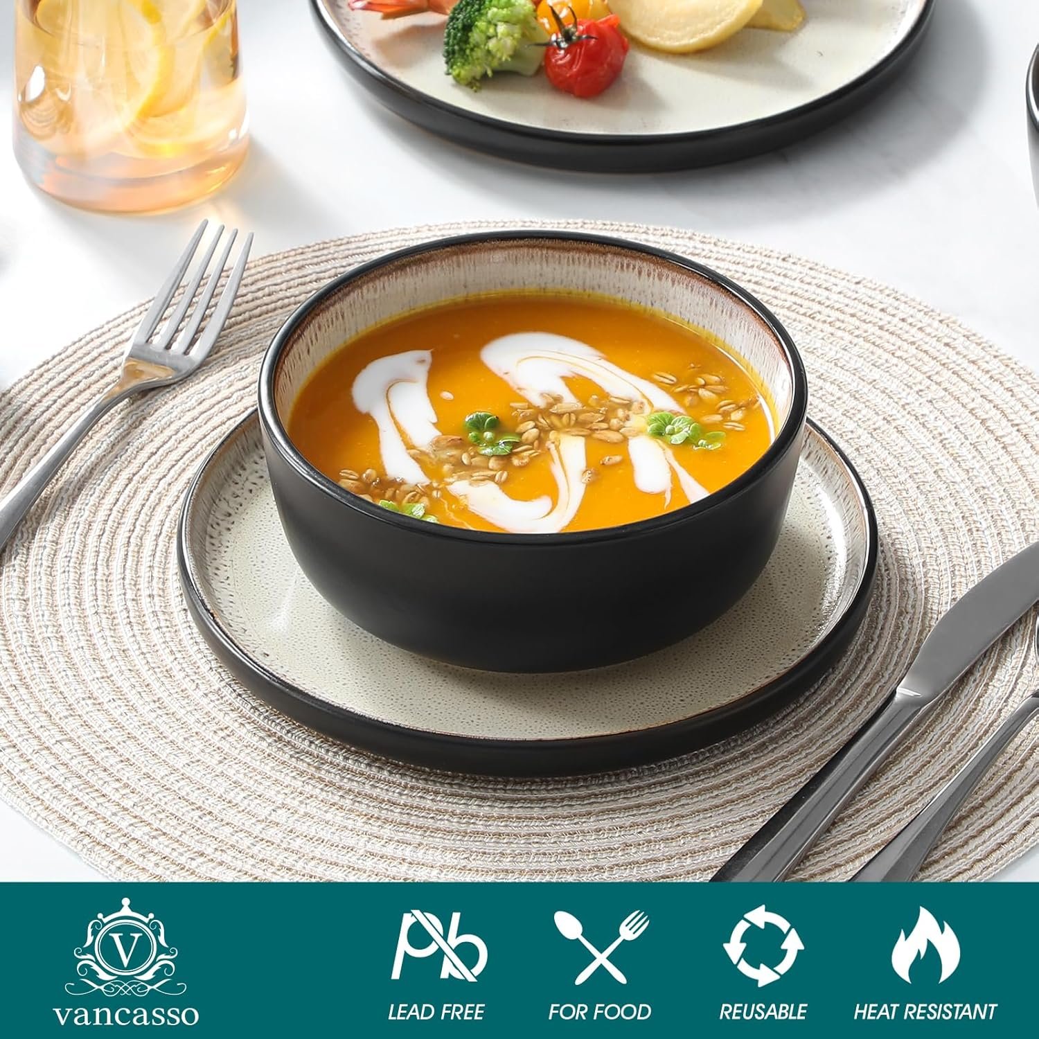 - Microwave & Dishwasher Safe: Thanks to its high-fired (2548°F+) mineral glaze, Vancasso plates and bowls set features an ultra-stable, moisture-resistant surface.