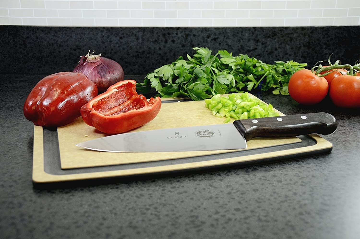 Set includes: 8″ Chef’s Knife, 8″ Serrated Bread Knife, 3 1/4″ Spear Point Paring Knife