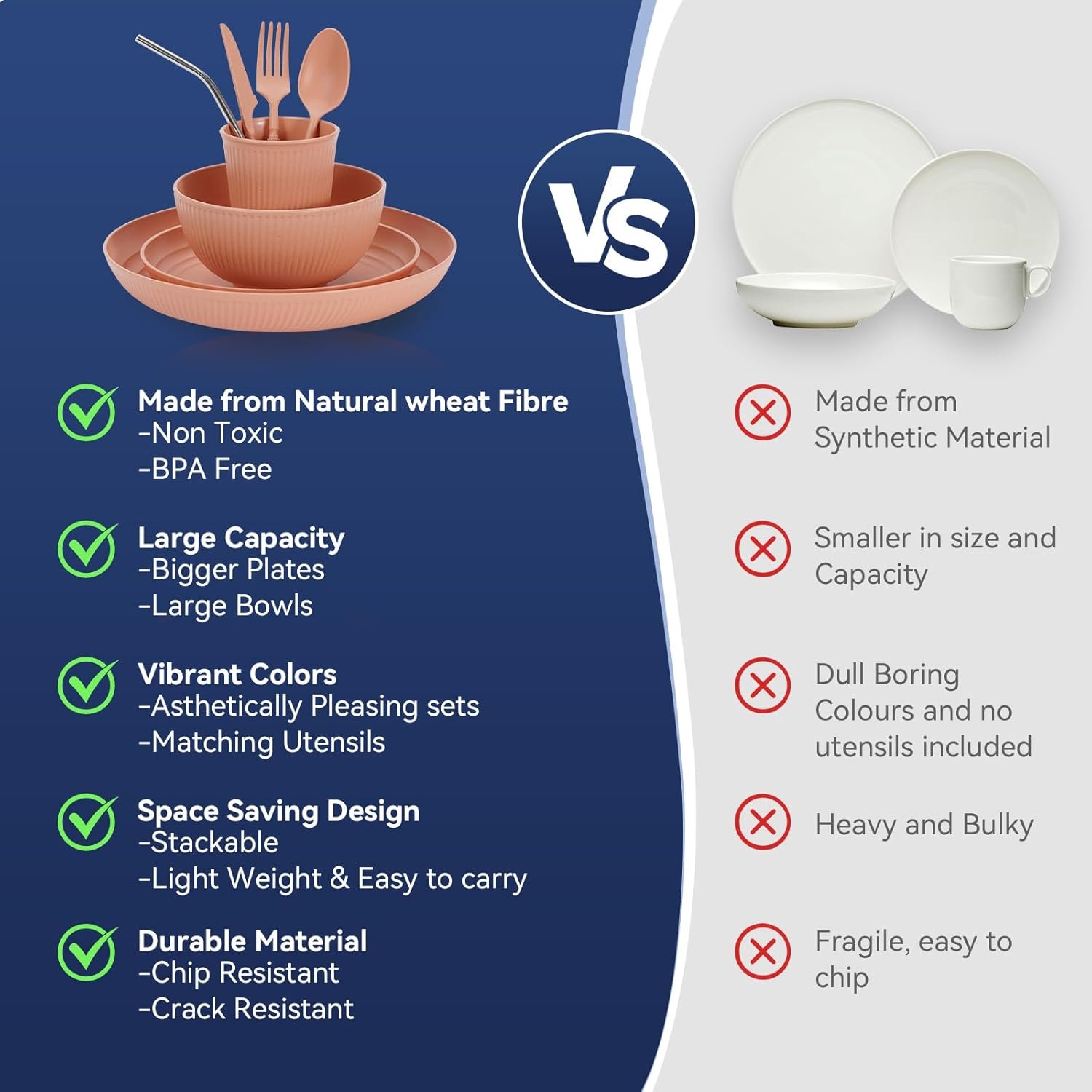 This black wheat straw dinnerware set is made from natural straw fiber and food-grade safe PP materials, ensuring it is 100% BPA-free and non-toxic. The set is reusable, protecting the health of you and your family by avoiding harmful chemicals.