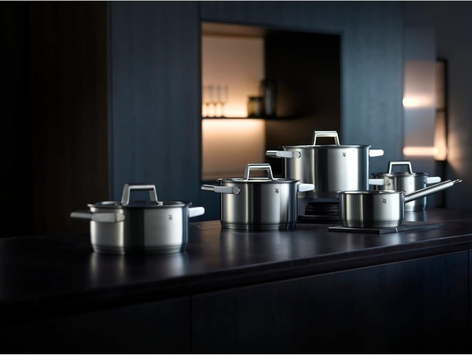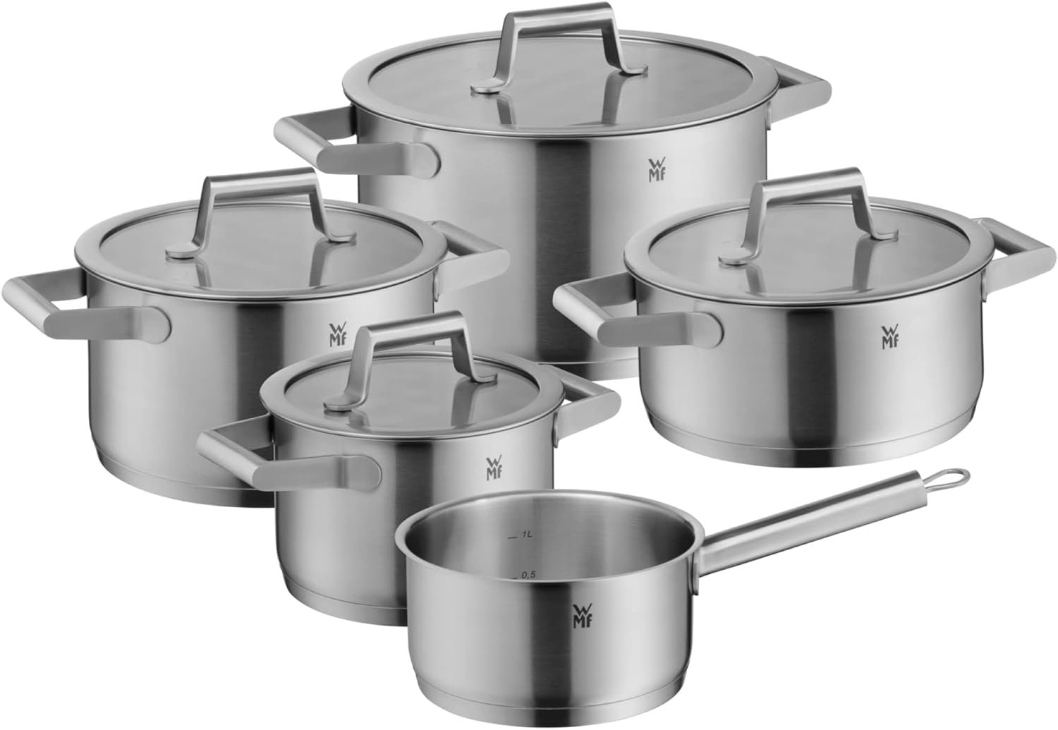 Home Kitchen Cookware Sets WMF Comfort Line Advantage Saucepan Set – 5-Piece Induction Cooking Pot With Glass Lid, Cromargan Matte Stainless Steel, Scale, Stackable, Uncoated