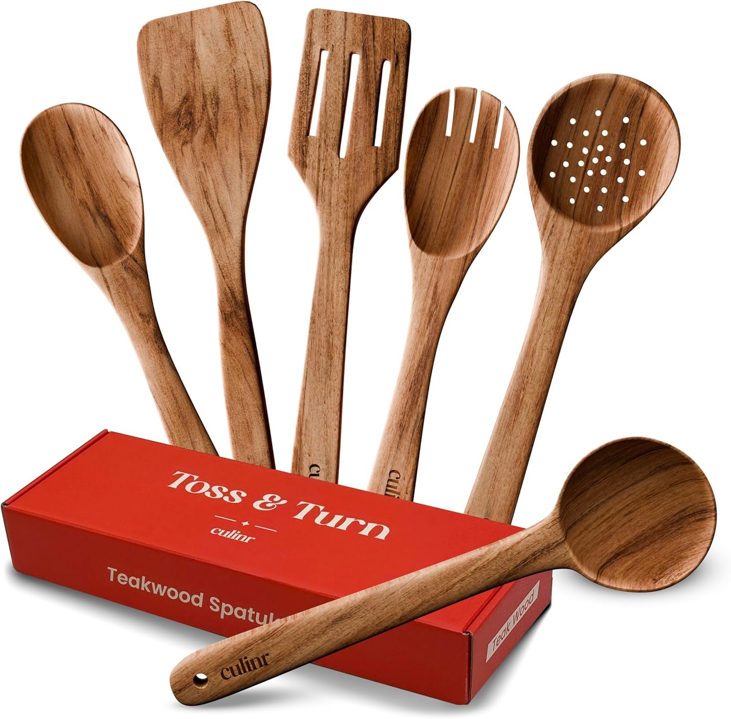 This comprehensive kitchen set includes 1x Mixing Spoon, 1x Salad Fork, 1x Serving Spoon, 1x Wooden Skimmer, 1x Slotted Spatula, and 1x Large Frying Spatula, making it an ideal addition to any kitchen.