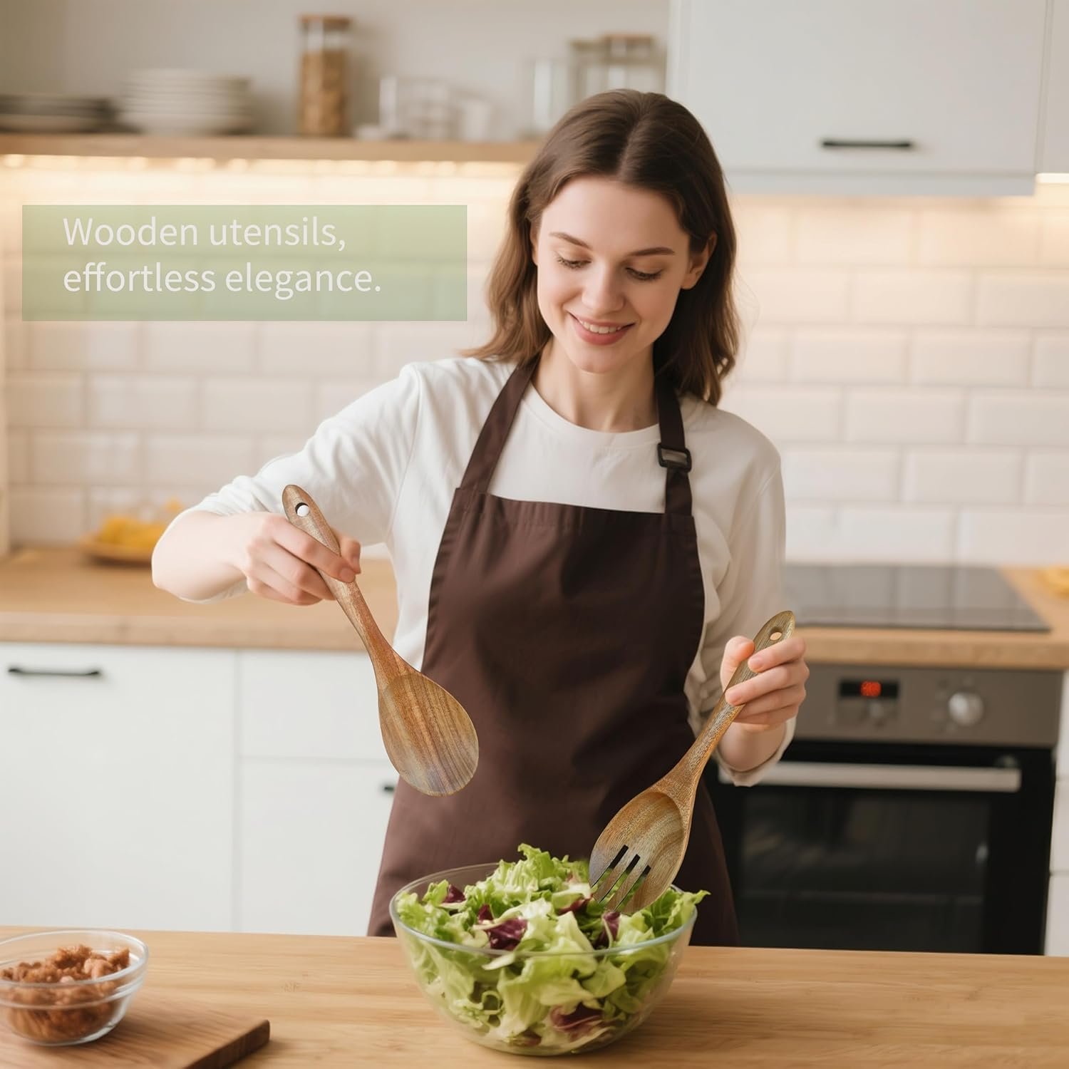 - Comfortable Grip: Each piece in the wooden utensil set is ergonomically shaped for ease of use, providing a comfortable grip that reduces strain during extended cooking sessions.