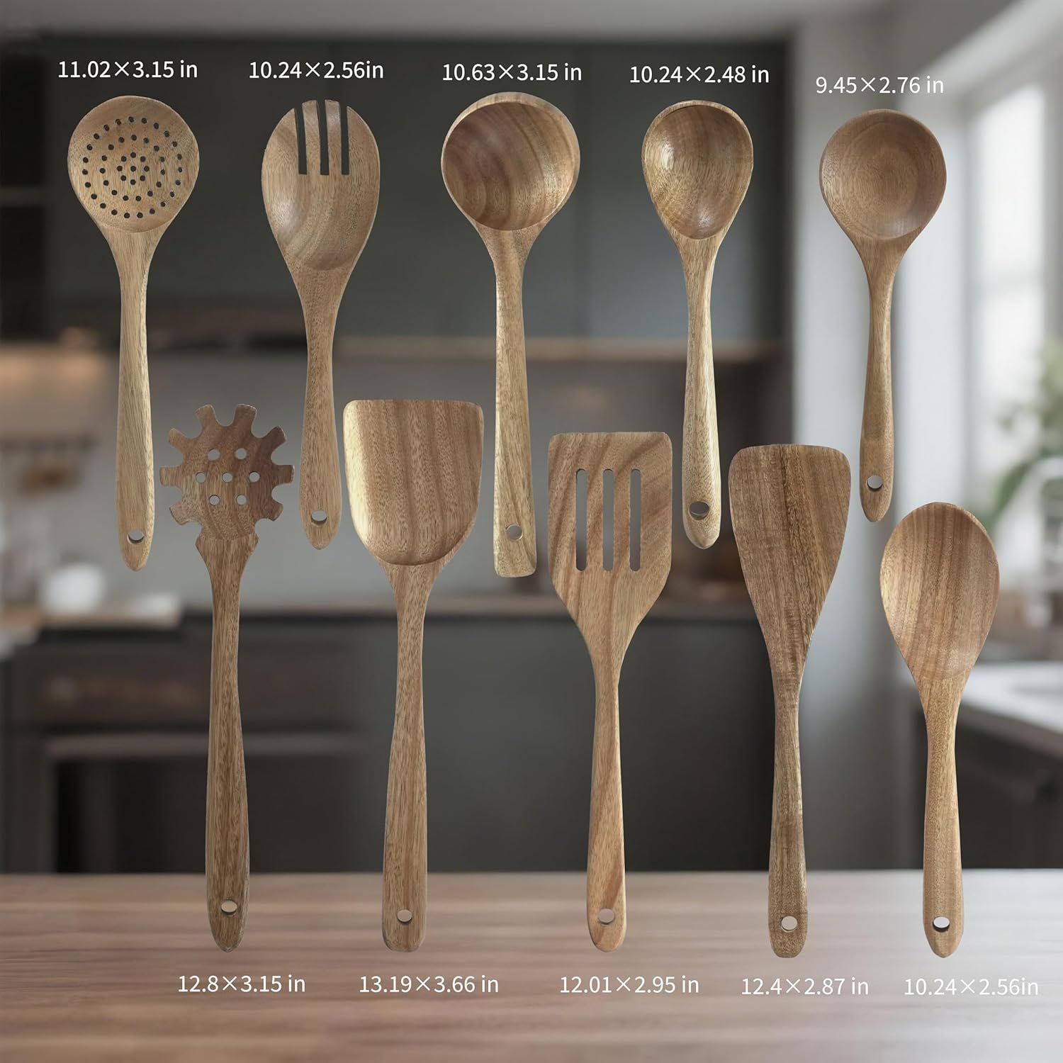 Eco-Friendly Material: Crafted from high-quality natural acacia wood, this wooden utensil set ensures durability and sustainability, making it an ideal choice for environmentally conscious cooks. The set is designed to provide a comprehensive collection of utensils for all your cooking needs.