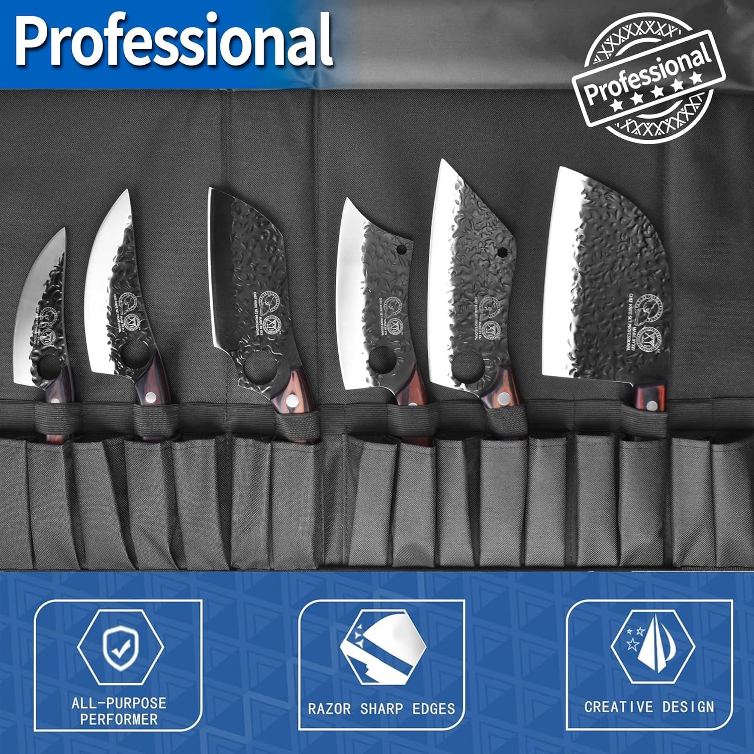 - Includes 6 various types of meat and vegetable cleaver boning knives, honing steel, and 2 cut-resistant gloves