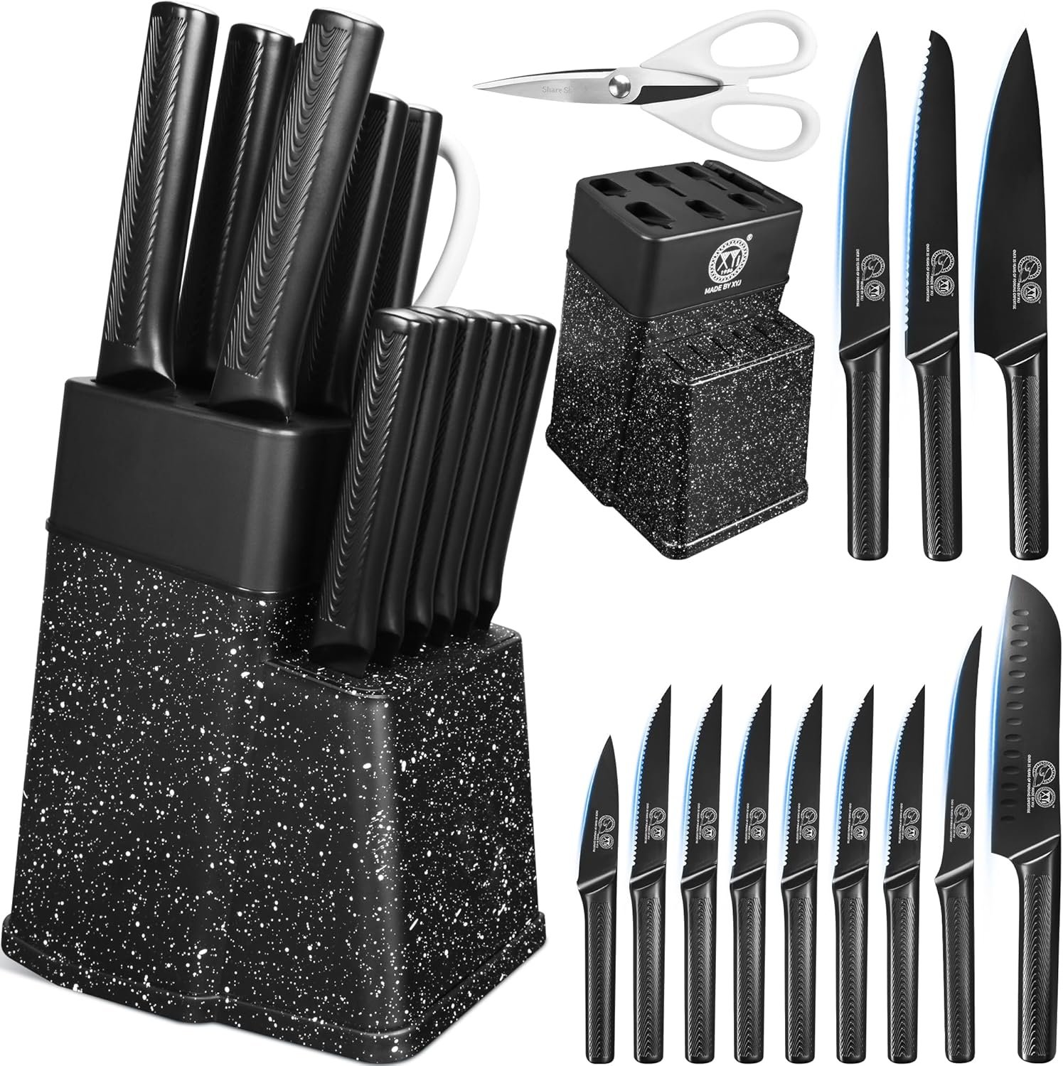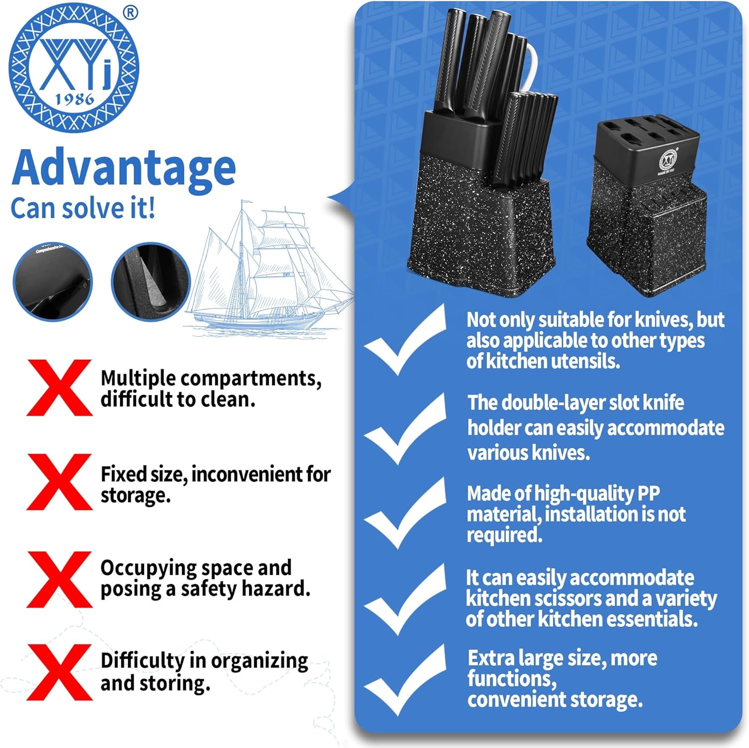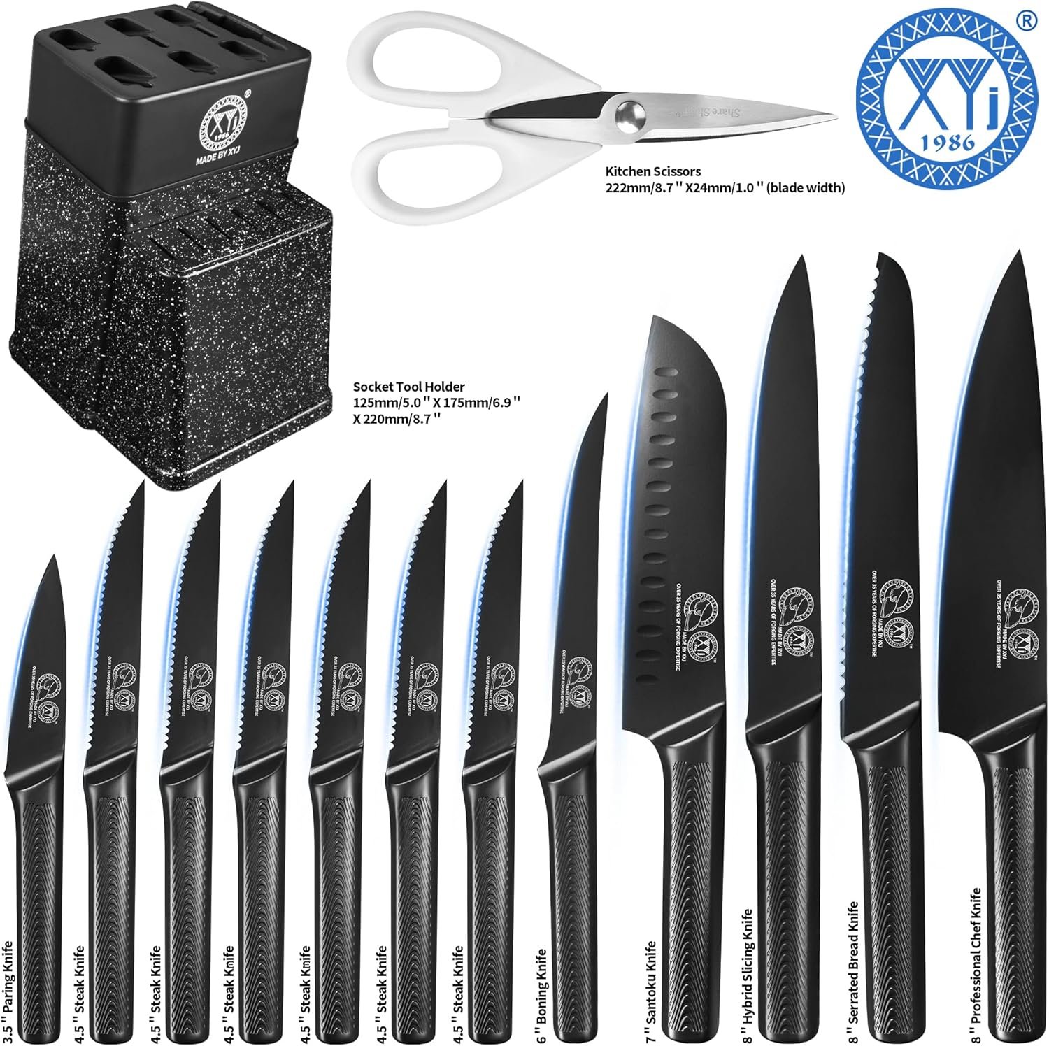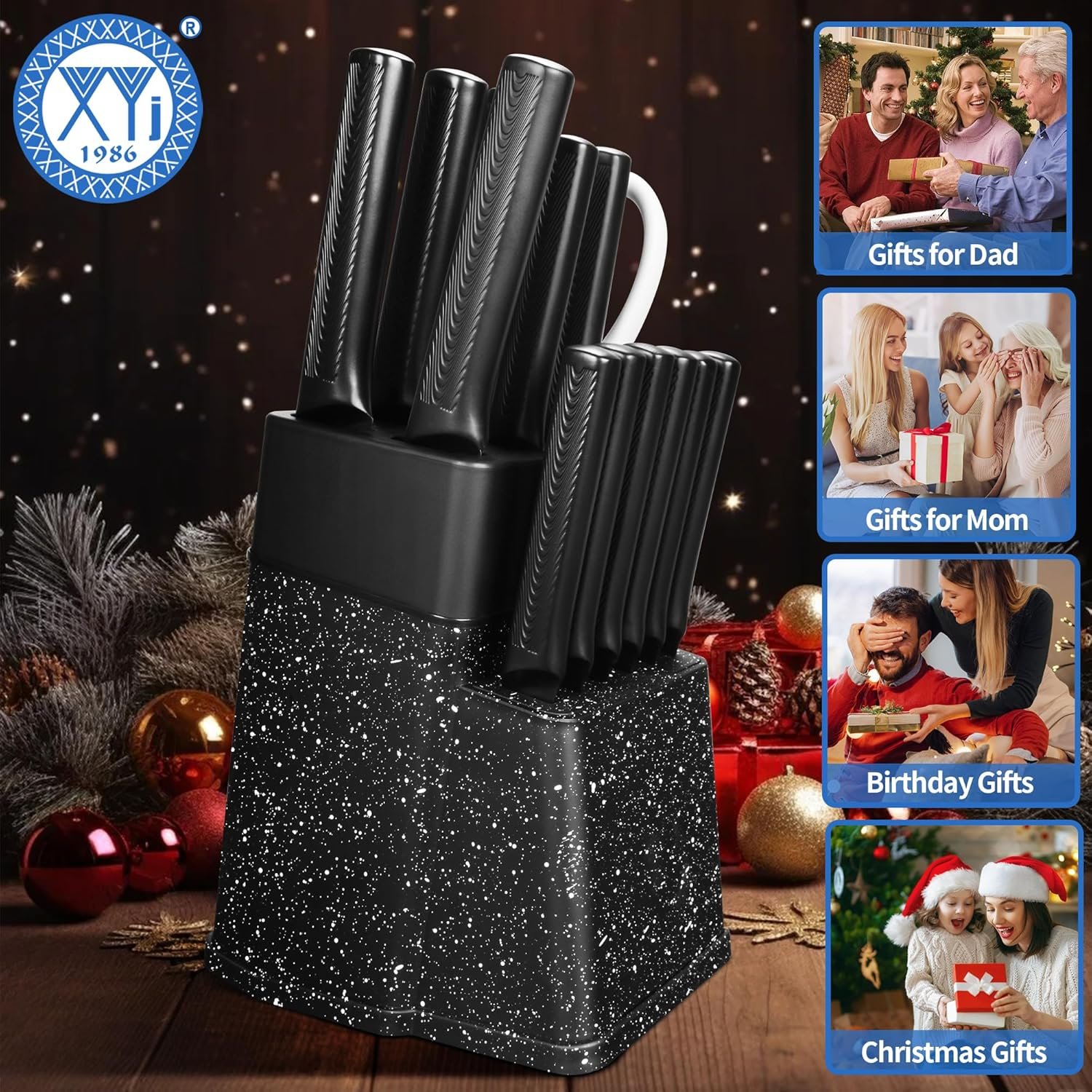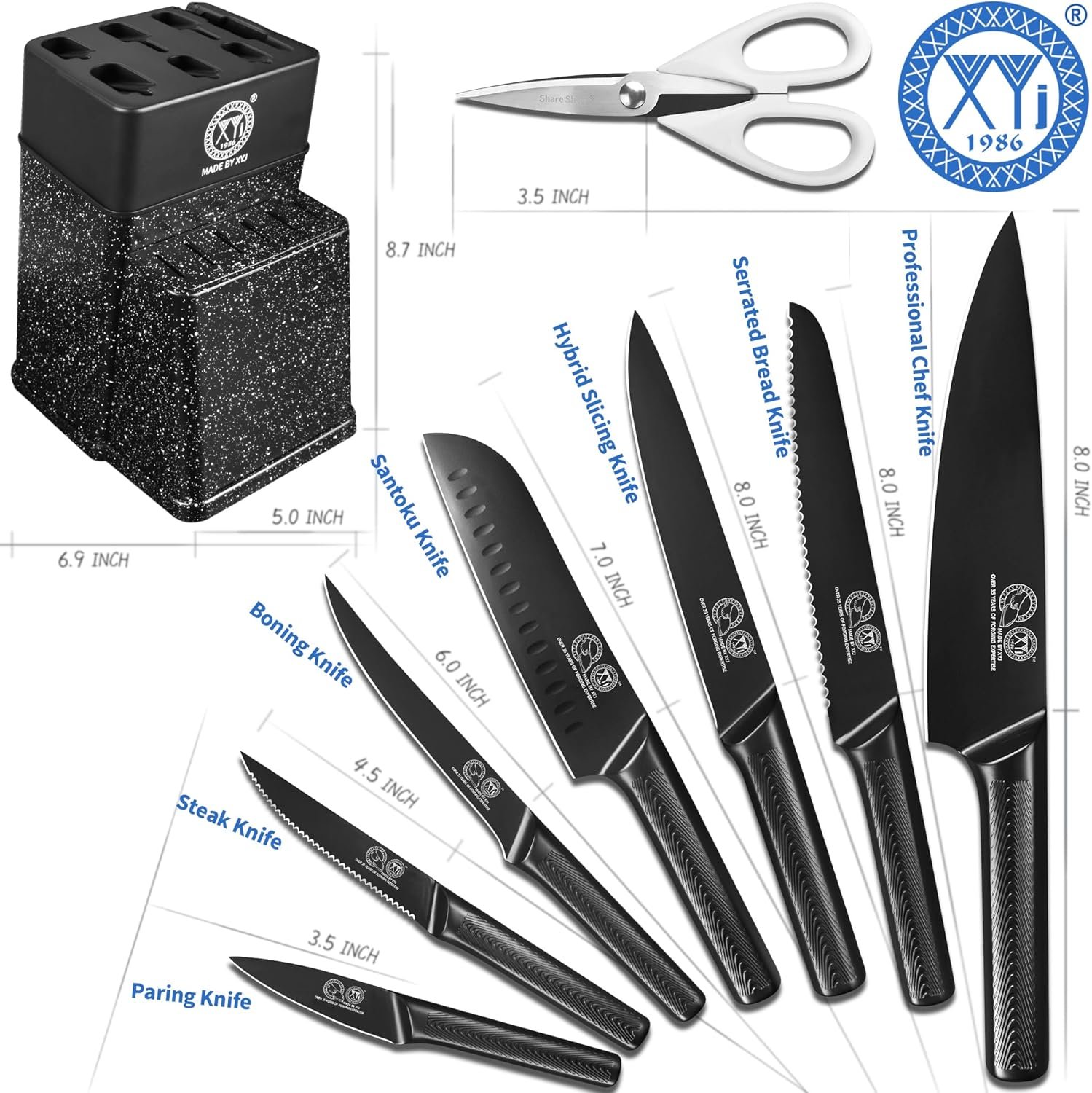 The XYJ kitchen knife set with block is of excellent quality and beautifully packaged, making it a perfect choice for home decor gifts. It is also suitable for gifting to fathers, mothers, homemakers, and as birthday presents, New Year gifts, housewarming presents, Thanksgiving gifts, and Christmas gifts.