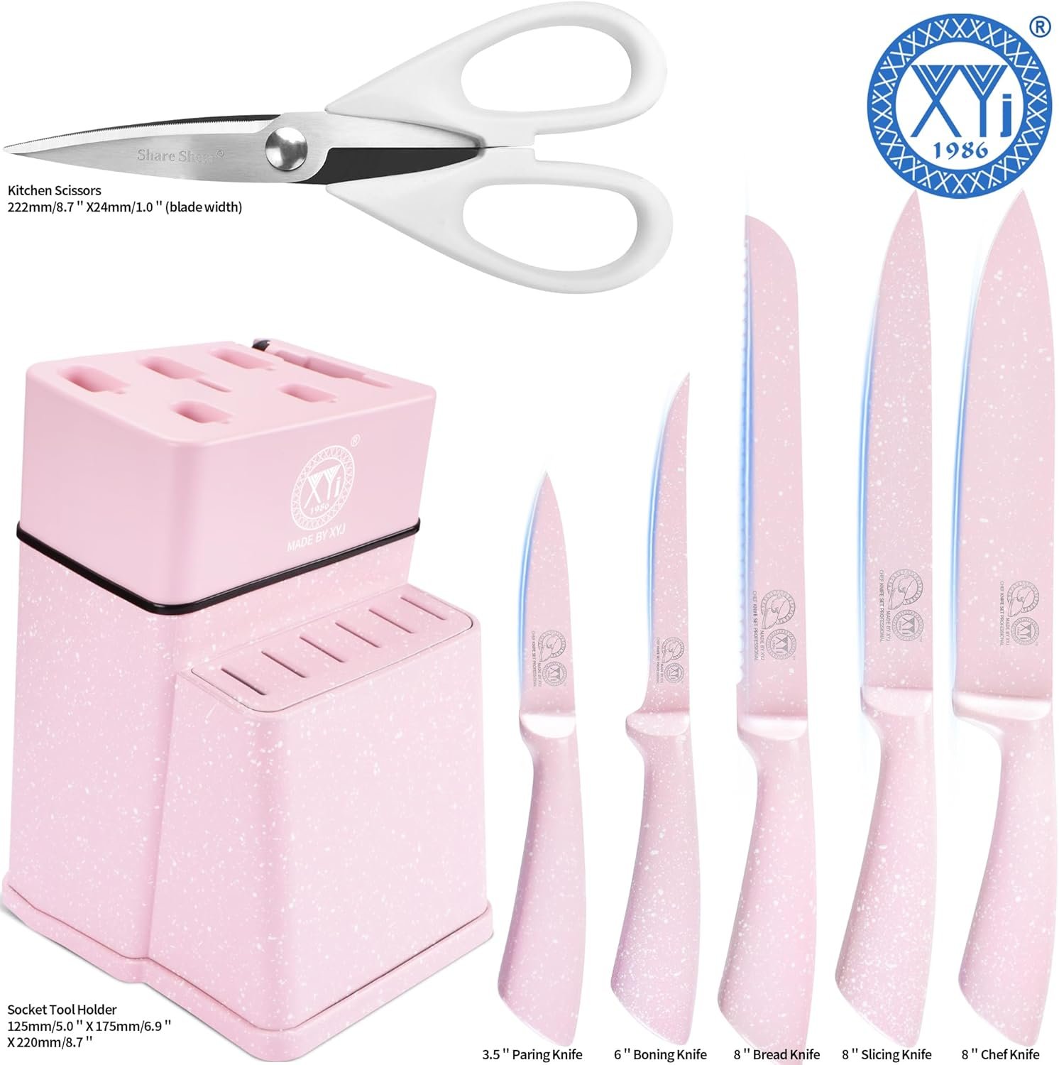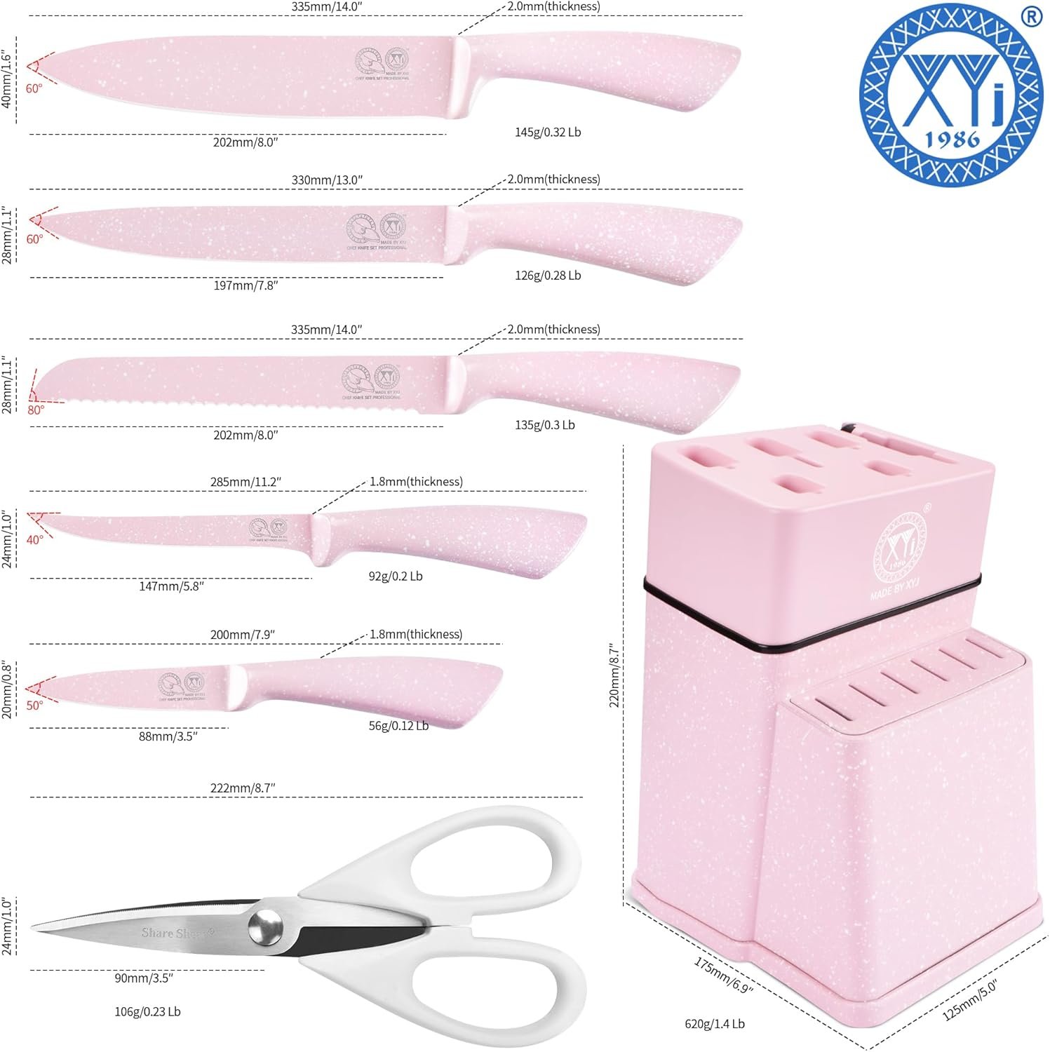 XYJ Stainless steel chef knife is a multipurpose cutlery knife, designed for professional applications, suitable for cutting, dicing, slicing, chopping with vegetables, fruit, fish bread, and meat for a great addition to the kitchen, camping, and outdoor experience. One set for all tasks!