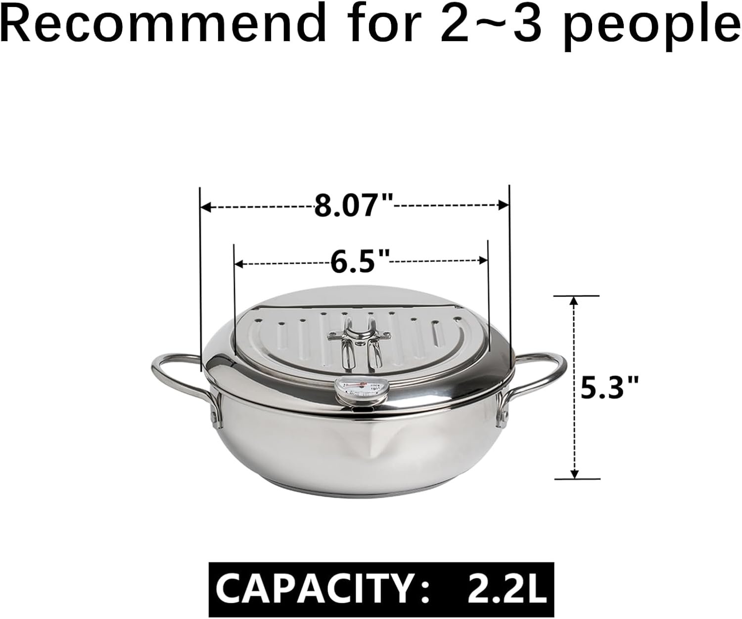 - Size: The fryer pot measures 8.1 inch × 5.3 inch, with a diameter length of 6.5 inch, and has a capacity of approximately 2200ML.