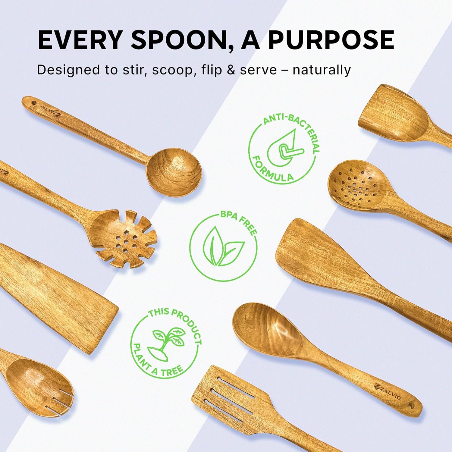 Zalvio 10-Piece Handcrafted Acacia Wood Spoon Set