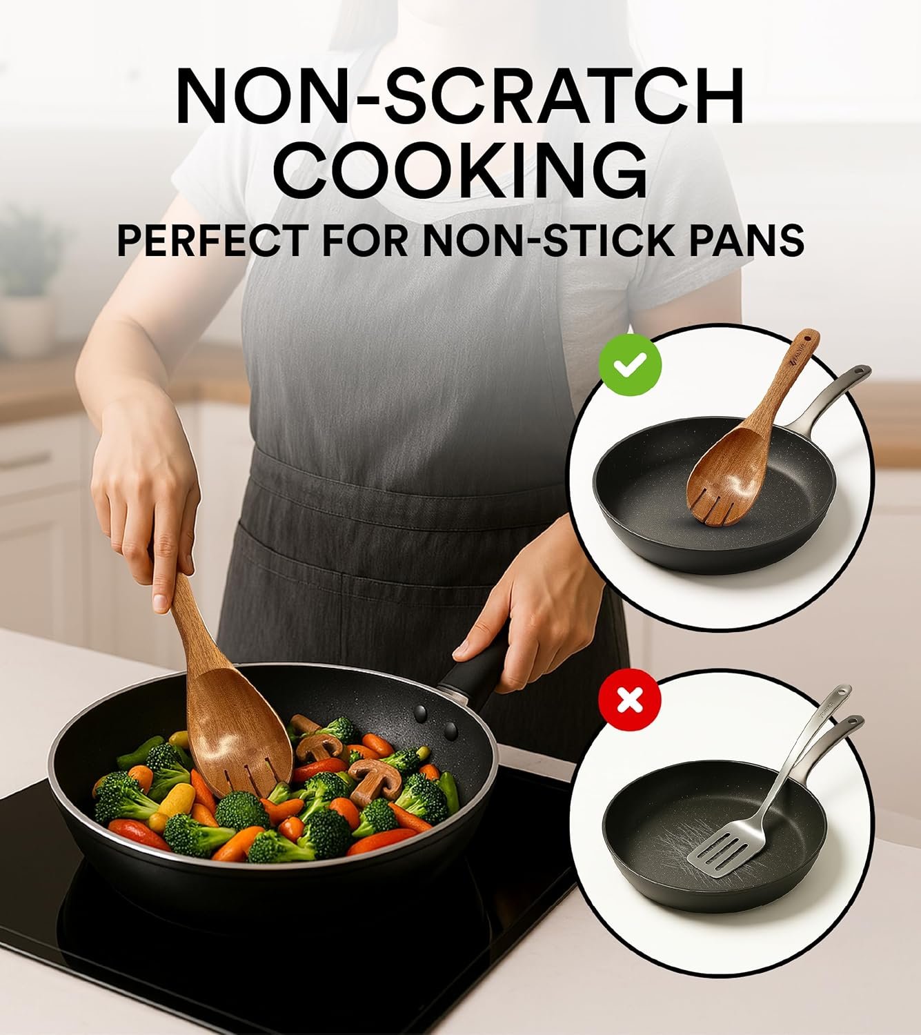 The Zalvio Acacia Wood Spoon Set is designed to provide you with a comfortable and enjoyable cooking experience. The set is gentle on non-stick cookware, preventing scratches and damage to your pots and pans. The ergonomic design and balanced weight of the utensils reduce hand fatigue during extended cooking sessions.