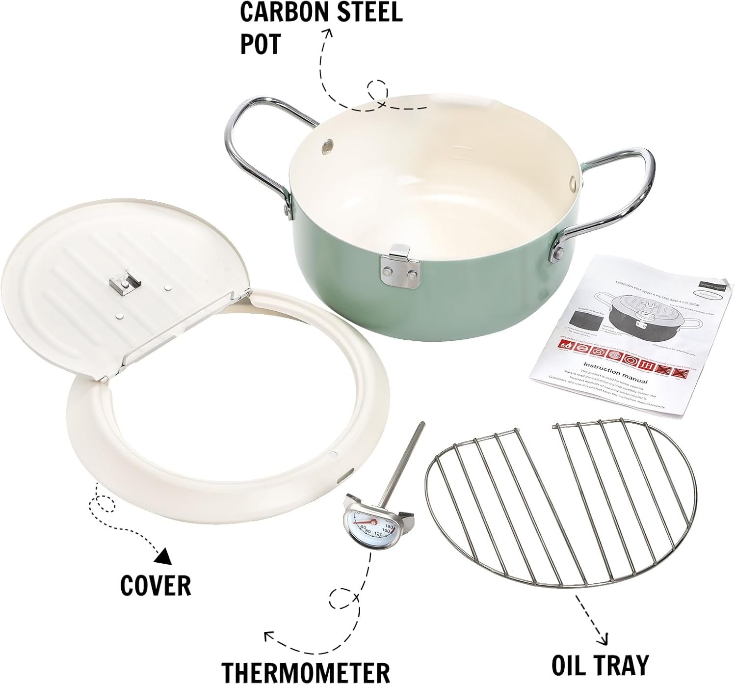- Premium material: The deep fryer pot is made of carbon steel for durability and even heating.