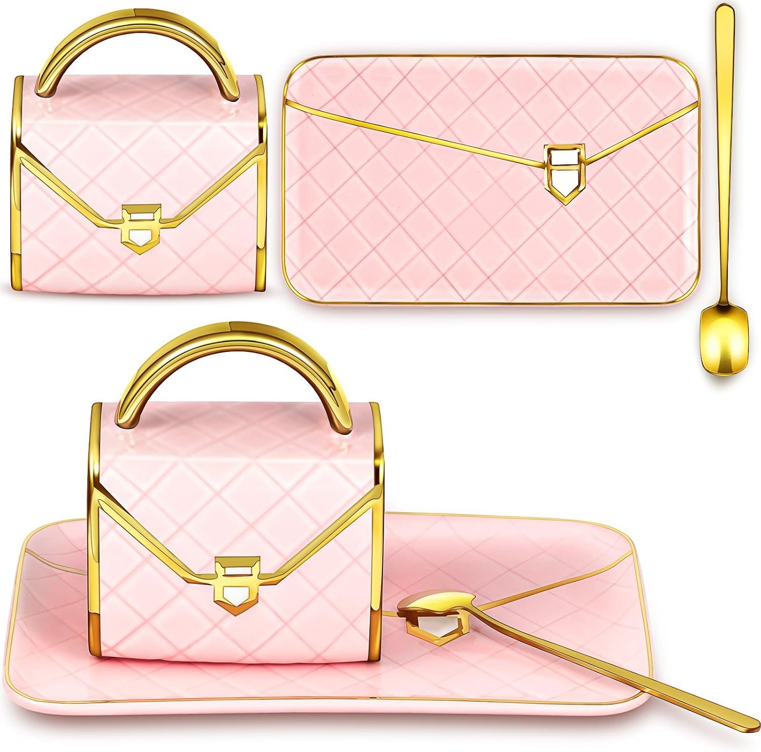 This coffee mug set includes 1 piece of handbag-shaped pink mug, a spoon, and a saucer, making it a thoughtful set for daily use. The set is well-packaged in a gift box, perfect for gift-giving needs.