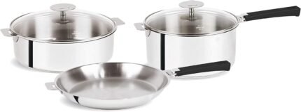 Cristel 1826 Collection 8-Piece Stainless Steel Set, Made in France, 18/10 Stainless Steel, 3-Ply Construction, Double Riveted Fixed Handle, Oven and Dishwasher Safe