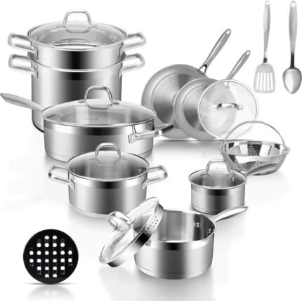 Price: (as of – Details) Introduction to Duxtop 18PC Professional Stainless Steel Cookware Set The Duxtop 18PC Professional Stainless Steel