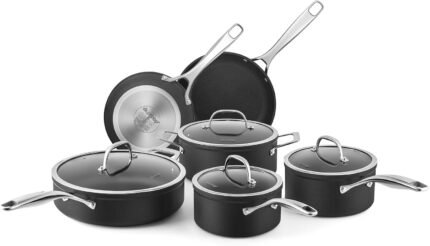 Duxtop Hard-Anodized Nonstick Cookware Set 10 PCS Anti-Scratch Pots and Pans Set, Aluminum Kitchen Induction Cookware PFAS-Free, Oven Safe to 500 °F, Dishwasher Safe, Black