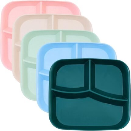 DYB DONGYONGBAO Unbreakable Divided Plates 10 Inch 5 PCS,Reusable Wheat Straw Kids Plates,Microwave And Dishwasher Safe, Perfect For Kids And Adults