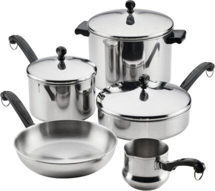 Price: (as of – Details) Farberware Classic Series Anniversary Edition 8-Piece Stainless Steel Cookware Set Cook up your own classic