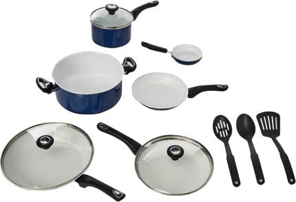 Farberware 17490 Ceramic Dishwasher Safe Nonstick Cookware Set / Pots and Pans Set – 12 Piece, Blue