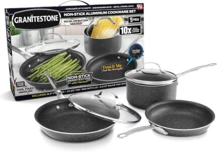 Granitestone Original 5-Piece Nonstick Cookware Set, Scratch-Resistant Pots and Pans, Granite-coated Anodized Aluminum, Dishwasher-Safe, PFOA-Free Kitchenware As Seen On TV