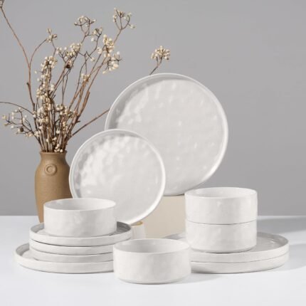 HaWare Dinnerware Sets, 12-Piece Plates and Bowls Set, Stoneware Dish Set for 4, Ceramic Dinnerware for Home Restaurant, Chip and Scratch Resistant, Microwave and Dishwasher Safe, Speckled White