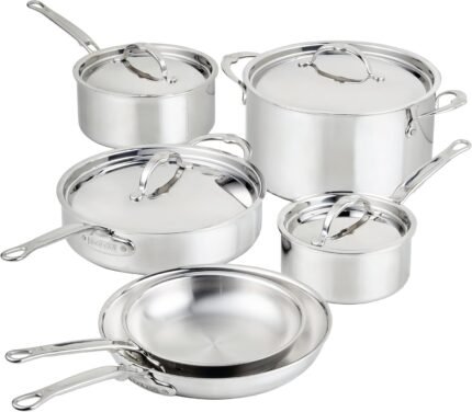 Hestan ProBond Luxe 10-Piece Cookware Set, Professional Clad Stainless Steel, ProCore Tri-Ply Clad Construction, Polished Exterior, Induction & Oven Safe