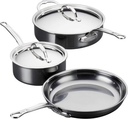 Hestan – NanoBond Collection – Titanium Stainless Steel 5-Piece Essential Cookware Set – Toxin, PFAS, & Chemical Free Clean Cookware, Induction Cooktop Compatible