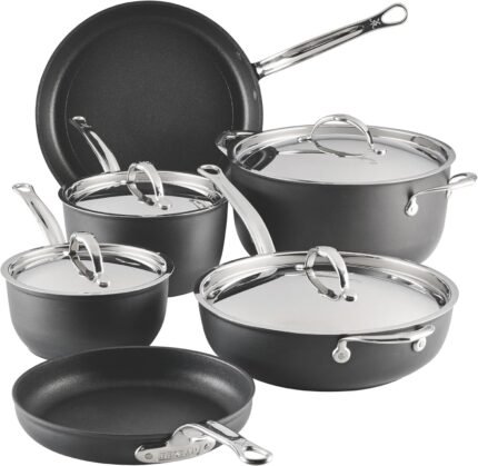 Hestan TITUM Fusion 10-Piece Nonstick Cookware Set, Double Impact Stainless Steel Base & Aluminum Body, Induction Compatible, Made without PFOAs