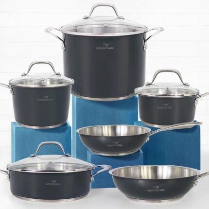 HOMICHEF 14-Piece Nickel Free Stainless Steel Cookware Set – Nickel Free Pots and Pans Set – Non-Toxic, Healthy Induction Cookware