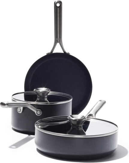 Price: (as of – Details) OXO Ceramic Professional Non-Stick 5-Piece Cookware Set Get more room and better performance with the
