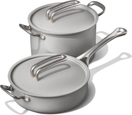 Risa Induction Cookware Pot and Pan Set by Eva Longoria – Nonstick, Ceramic Coating, Stainless Steel Handle Cookware Set – 10 inch Pot, 11 Inch Pan w/Lid – Cool Grey – Kitchen Sets for Cooking