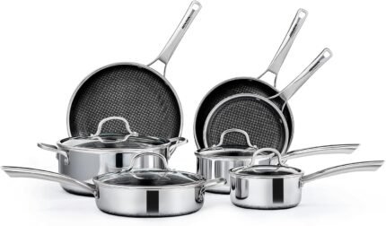 Price: (as of – Details) Comprehensive 10-Piece Cookware Set This complete set includes an 8″ egg pan, 10″ frying pan,