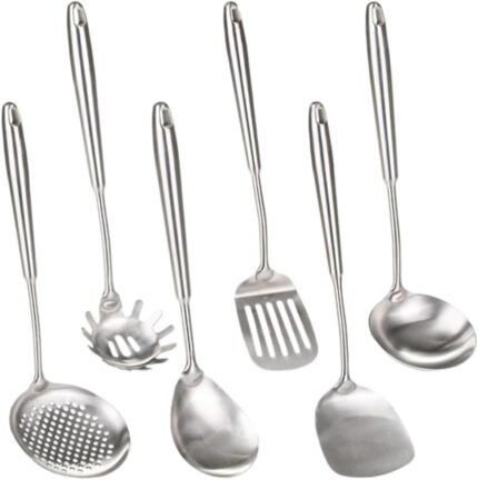 Price: (as of – Details) Introduction to 6 PCS Stainless Steel Kitchen Utensils Set This stainless steel kitchen utensil set