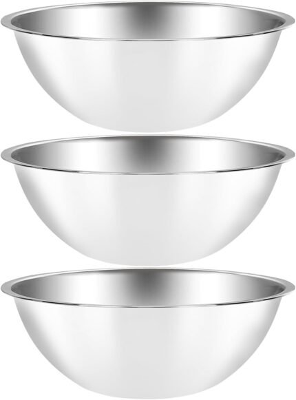 Suwimut 3 Pack Stainless Steel Mixing Bowls, 5 Quart Flat Base Stainless Steel Serving Bowls, 13 Inch Mirror Polish Large Metal Bowl Set for Kitchen Cooking, Baking, Prepping