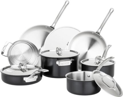 Price: (as of – Details) Viking 12 Piece 3-Ply Cast Black Stainless Steel Cookware Set Create culinary masterpieces and elevate
