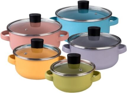 Cinsa 10-Piece Pot Set – Premium Enamel on Steel Pots with Lids, Compatible with Electric, Induction, and Gas Stoves, Multicolor